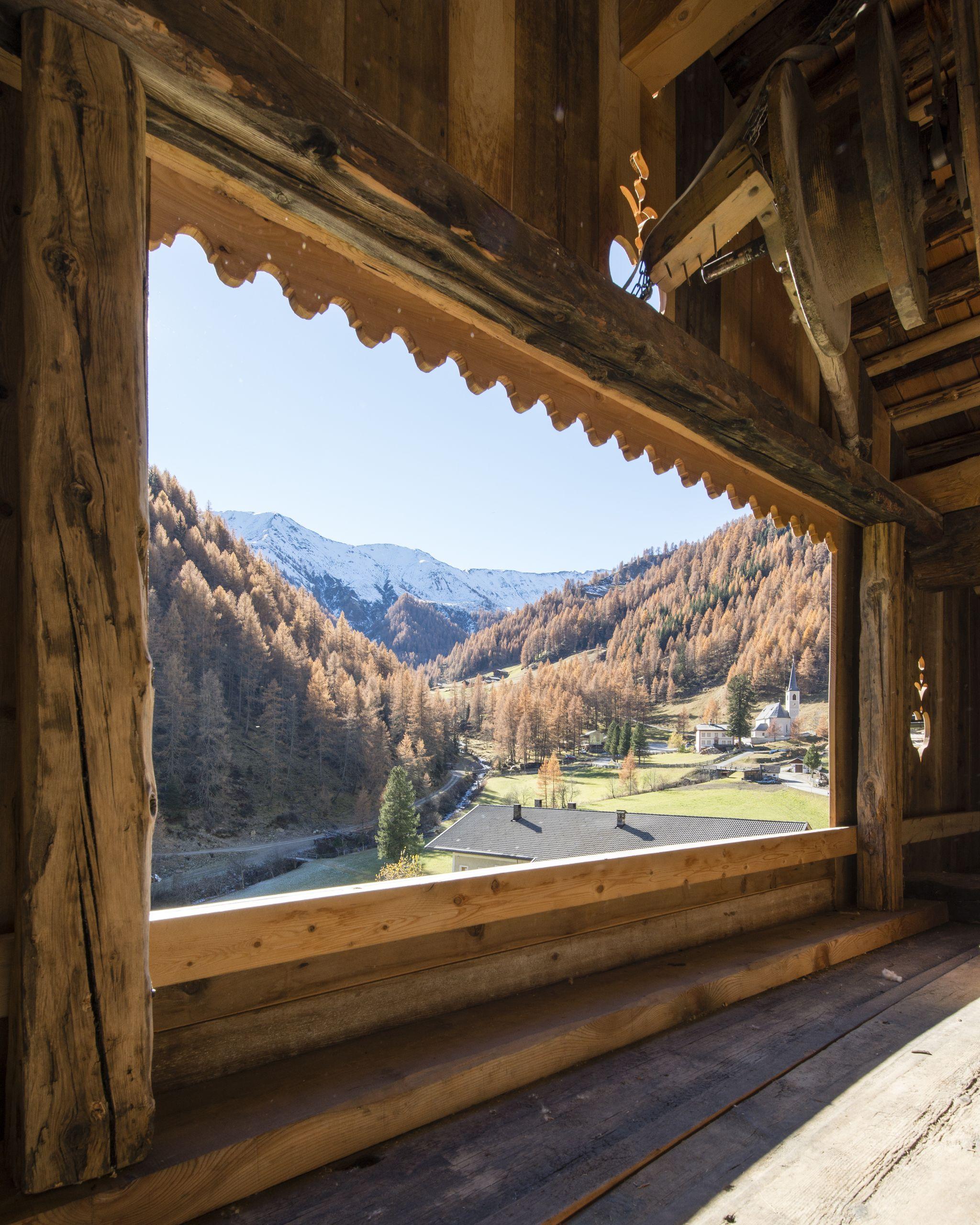The Giatla Haus is a lavishly renovated, sun-baked, over 300-year-old farmhouse in the hamlet of Kalkstein, in the mountaineering village of Innervillgraten, at 1640 m above sea level.