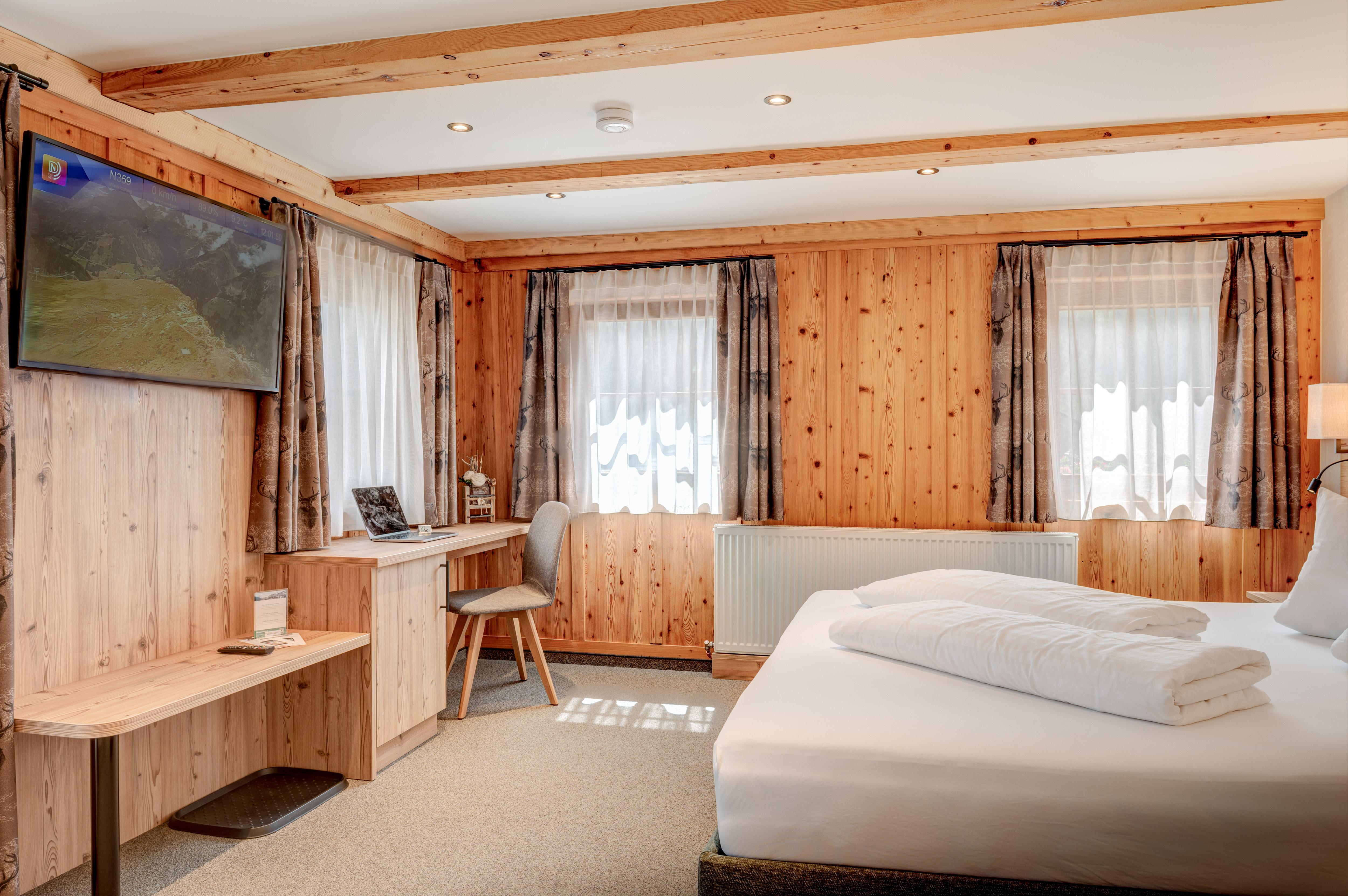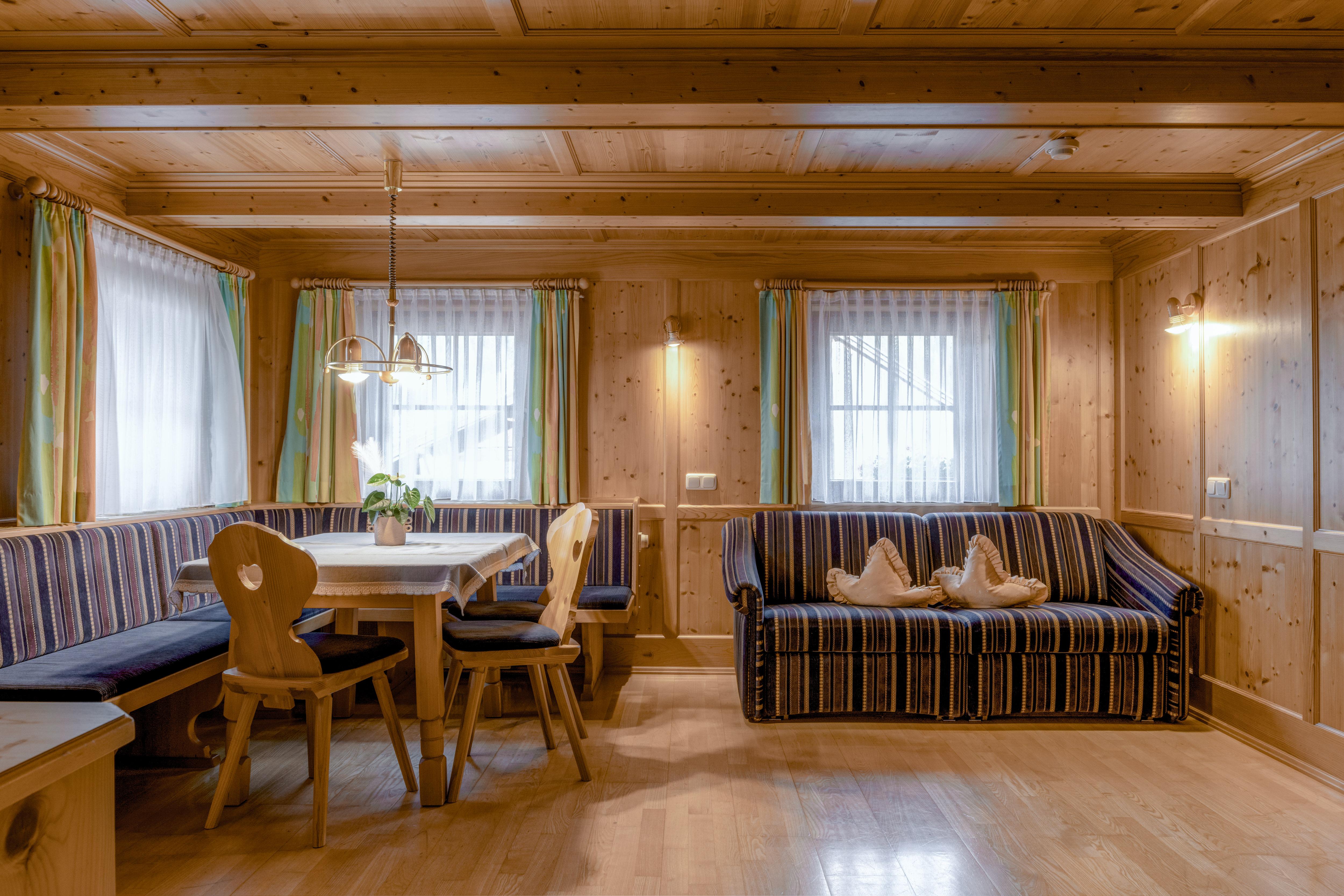Situated on the Defereggen valley's sun terrace in the heart of the Hohe Tauern National Park; cosy, family-friendly, well-furnished; excellent food, rustic parlour; pleasant spa area with massage, 5 double rooms bookable in a genuine old wooden house; ski and hike specials, playground, hunting possibility, sledging and snow-shoeing. 4 apartments available. Salubrious climate at 1,500 m above sea level. Free wireless, e-bike rental.
