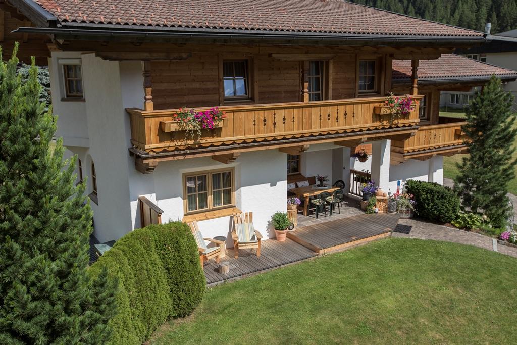 Unsere Gäste schätzen besonders die gemütliche Atmosphäre in der Tiroler Zirbenstube mit Kachelofen und die direkte Verbindung zur Sonnenterrasse mit eigenem Garten.