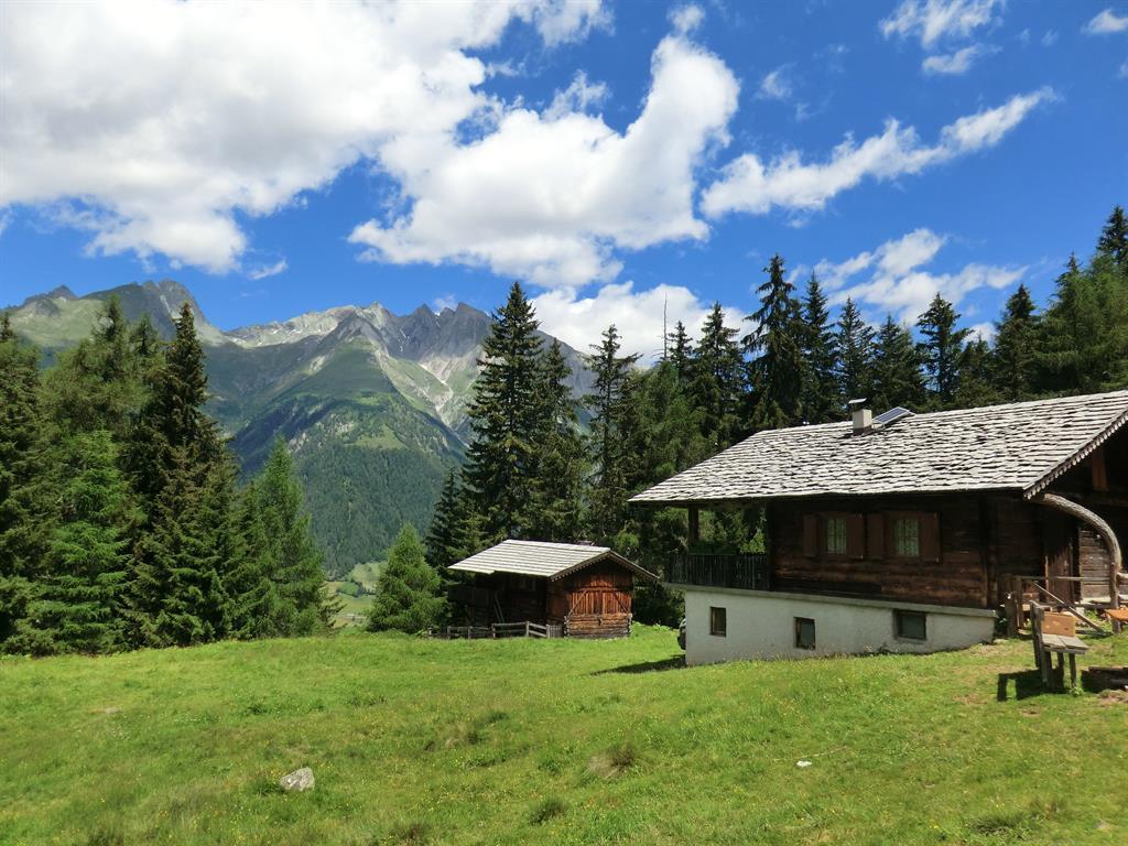 Unserer Almhütte (Motschndaba) befindet sich auf ca. 1600 m in Richtung Wetterkreuzhütte und ist mit dem Auto zu erreichen. Im Mittelgeschoss gibt es drei Räume: ein Schlafzimmer mit einem Stockbett und einem Einzelbett (3 Pers.), ein mit Holz beheizbarer Aufenthaltsraum mit Zugang zur Terrasse und ein weiterer großer Raum mit Küche, zwei Tischen, Diwan und einer Schlafnische mit Doppelbett. Weiters gibt es noch ein Matratzenlager. Im Untergeschoss befinden sich das Bad mit Dusche und Badeofen.