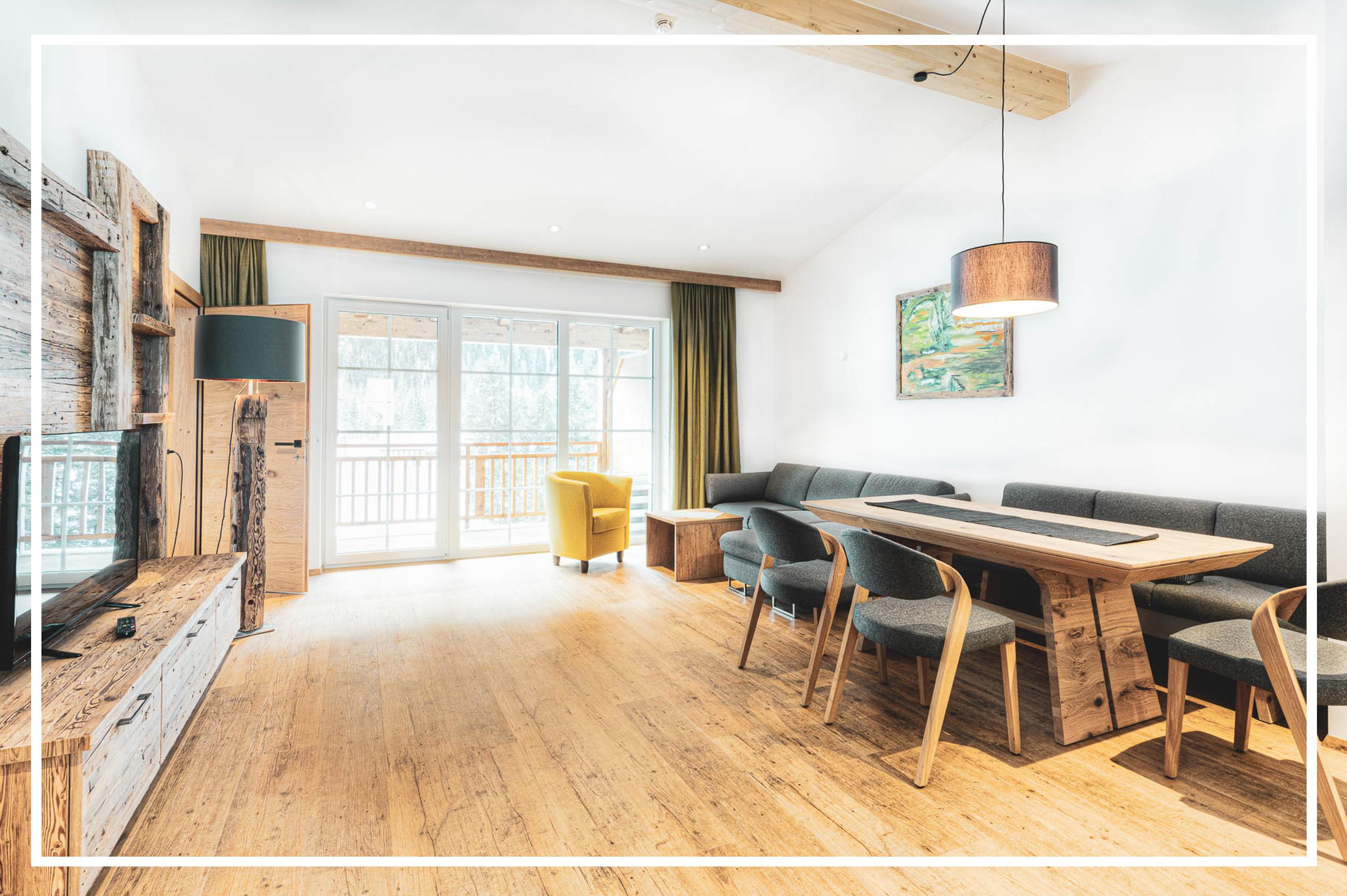 The Tyrol Mountain Aparts is a new apartment house in the center of St. Jakob. In addition to the apartments, a new wellness area, the Tyrol Alpen SPA, a breakfast room, carports, ... are available to our guests. The furnishings from the combination of old and modern were chosen in such a way that the authenticity of Tyrol should be felt once again. All apartments have 2 bedrooms and 2 x shower and toilet.