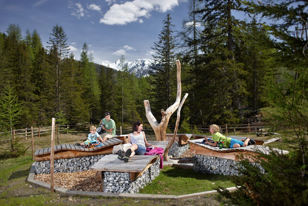 The entry points for walking on the 19.5 km valley circuit trail in Kals have been provided with lovely information boards and hiking maps. These are located at the Knopfbrücke near Arnig, in Lesach near the bridge, at the end of the valley in the parish of Taurer, before the head of the valley in Dorfertal, in Großdorf/Tembler and in Kals/Glor. The pure walking time for the entire circuit takes some six to seven hours, but can be subdivided into individual stages, with points where you can enter and exit as you wish. There are rest areas at several viewing points which have rustic ‘Glocknersessel’ chairs and information boards. Numerous fountains provide crystal-clear drinking water to the entire circular valley trail in Kals, which is not difficult and has been carefully maintained. Moderate altitude differences provide a reasonable and recommended undertaking for all age groups. Car parking is available at all access points.