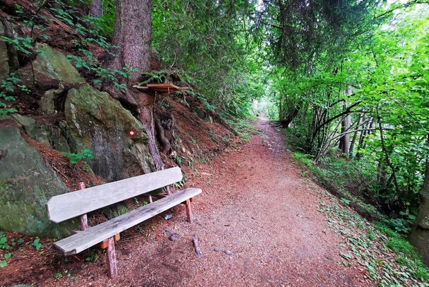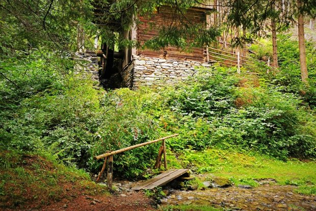 The starting point for this walk is the parking place Europastraße at the valley station of the cable cars Matreier Goldried Bergbahnen. From there, first turn left past in direction center of Matrei in Osttirol. After the supermarket Spar, turn right onto the street Lienzer Straße and follow it to the former church Spitalkirche, which is also called chapel Josefskapelle. The interior of the church on the 1st floor can be reached via an outside staircase. The marble relief of the dying St. Joseph was created by the local artist Virgil Rainer. At the height of this sight, a path leads up to the right between houses no. 11 and no. 13. Then turn right onto the streets Dekan-Unterpranger-Weg and Lienzer Straße. In front of the building Lienzer Straße 17b, turn left up the path and go through the subway to reach the street Hildenweg. At the next junction, take the upper path and follow its course to house no. 28. Then a path leads through the forest past the small stream Mühlbach and the mill Trattner Mühle. Do not deviate from the path until you reach its end (at about the level of the bridge at the street Felbertauernstraße in the district Seblas). Then turn around. Initially, take the same path back. As soon as you reach the asphalt road, stay on it for a while. At the next junction (house Seblas no. 4), continue to the right. Follow the asphalt road without turning off. Before you reach the main road, the Felbertauernstraße, take the footpath to the right along the road. Finally, go through the subway, past the valley station of the cable cars Matreier Goldried Bergbahnen and the grocery store M-Preis. Now you have arrived the starting point.