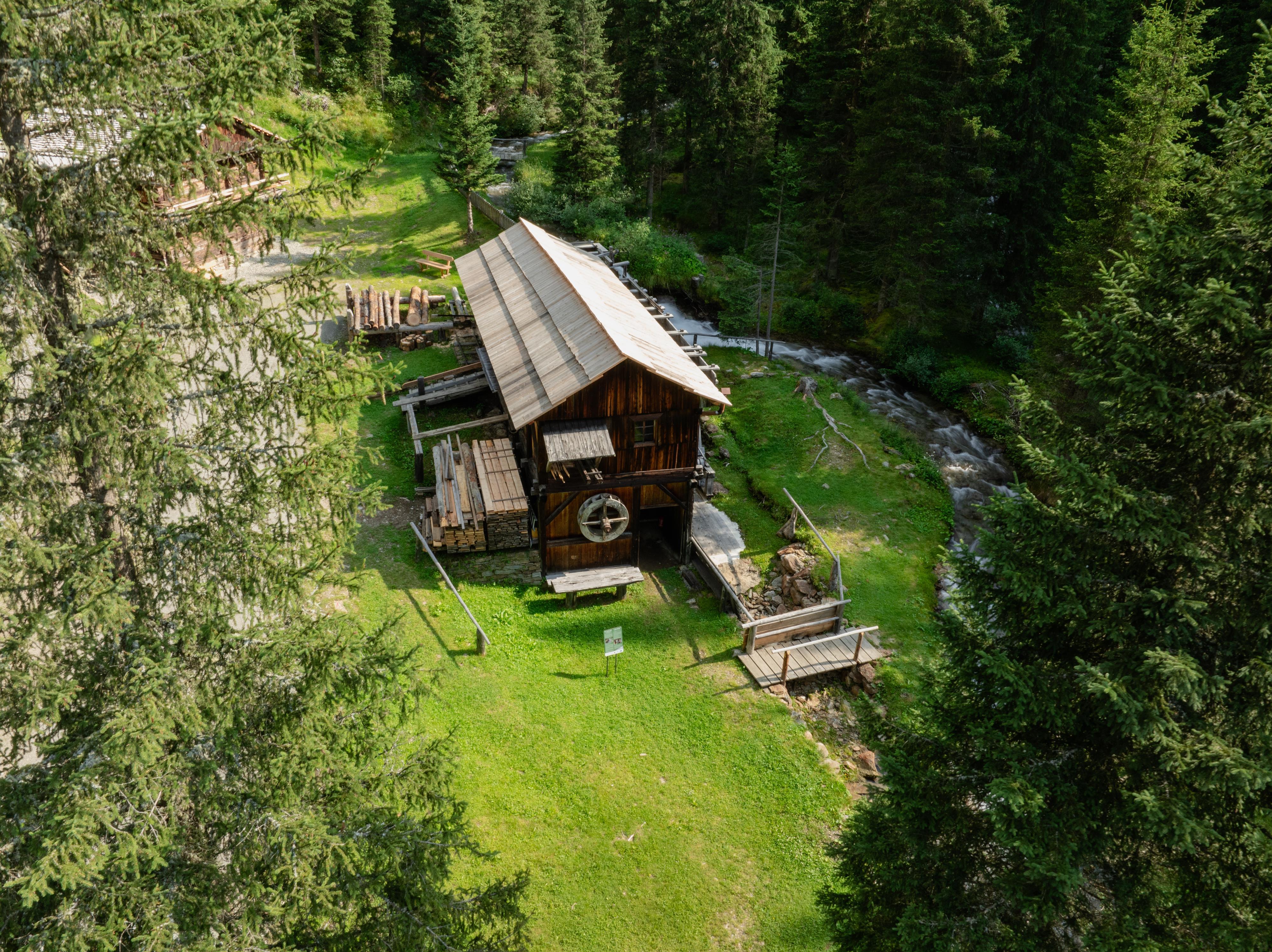 Ein Ensemble bestehend aus einer Mühle, einem Venezianschen Gatter-Sägewerk, einer Lodenstampfe, einer Almhütte sowie einem Einhof zeigt das Leben in den Alpen vergangener Zeiten mit all seinen Herausforderungen, Handwerken, Traditionen, landwirtschaftlichen Geräten, Holzbauten und der Kraft des Wassers.