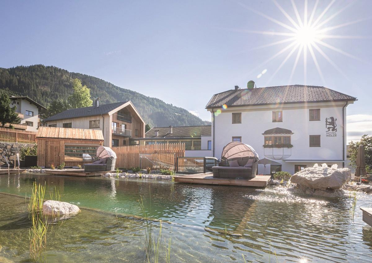 Das Hotel-Café Weiler liegt direkt neben der Hauptstraße am westlichen Dorfrand von Obertilliach.
