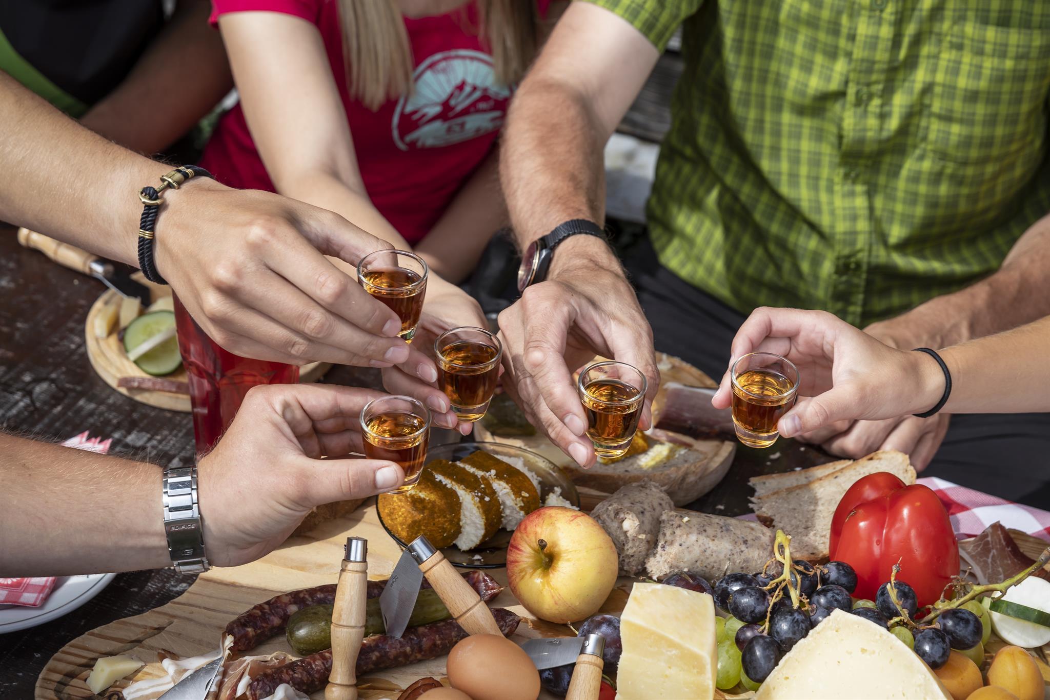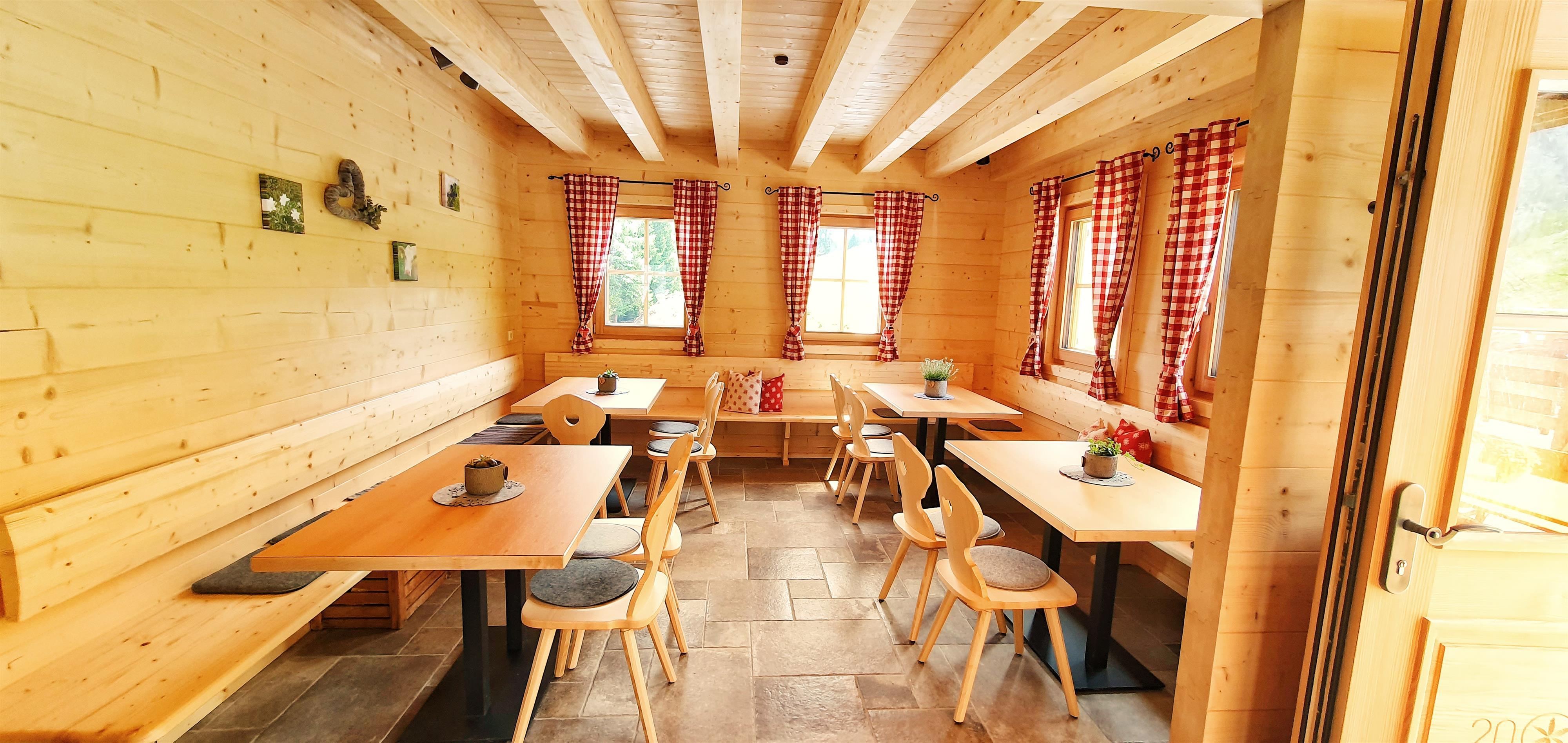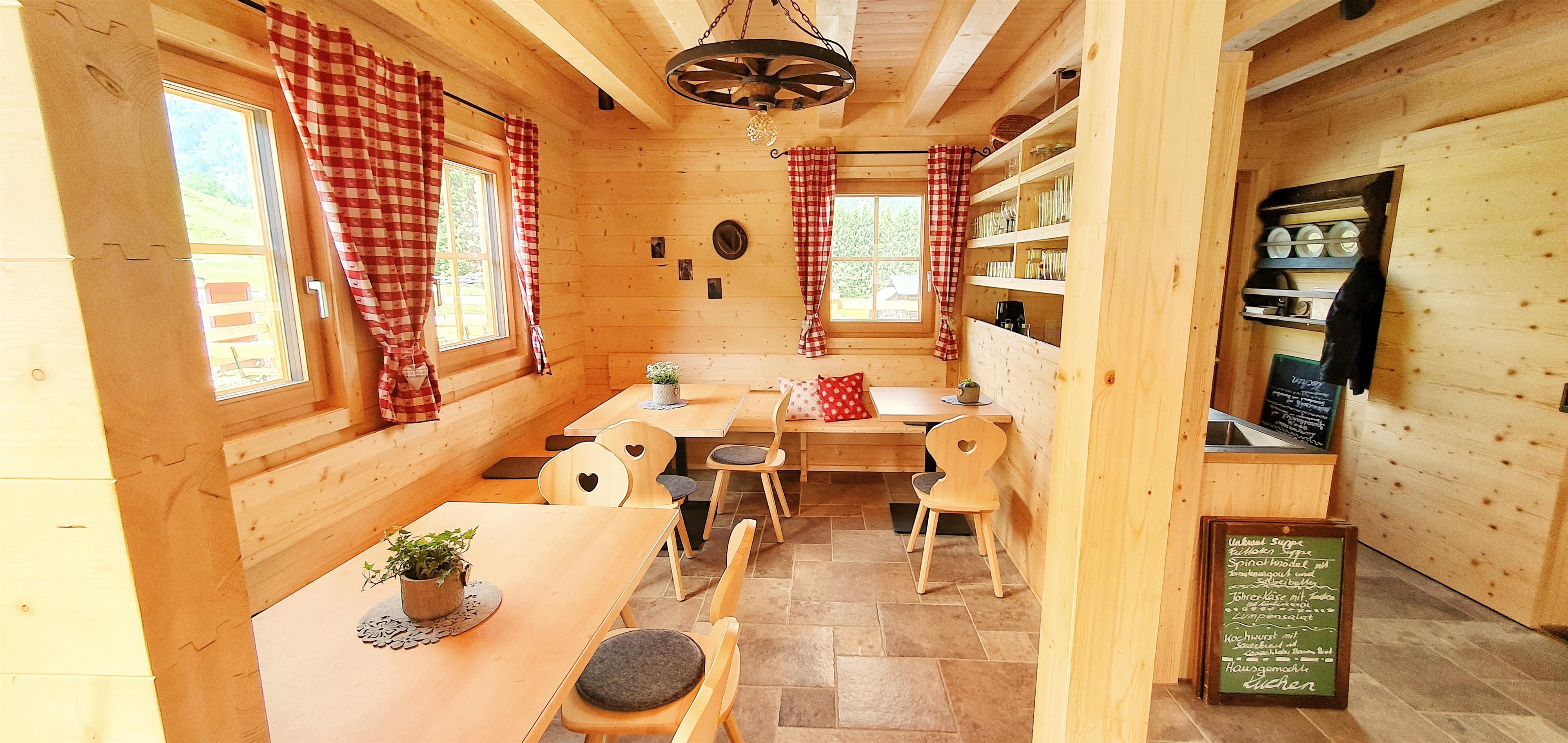 An der Hütte angekommen erwarten wir Sie gerne mit hausgemachten Säften, kühlem Bier, und anderen Durstlöschern. In herrlicher Umgebung und bei strahlendem Sonnenschein laden wir Sie und Ihre Familie ein sich durch unsere kleine aber feine Speisenauswahl zu probieren - es ist für jeden und jede etwas dabei! Unverzichtbar ist natürlich unsere bekannt gute Brettljause und unsere frisch zubereiteten Eintöpfe. Aber auch die hausgemachten Kuchen sind eine Sünde wert.