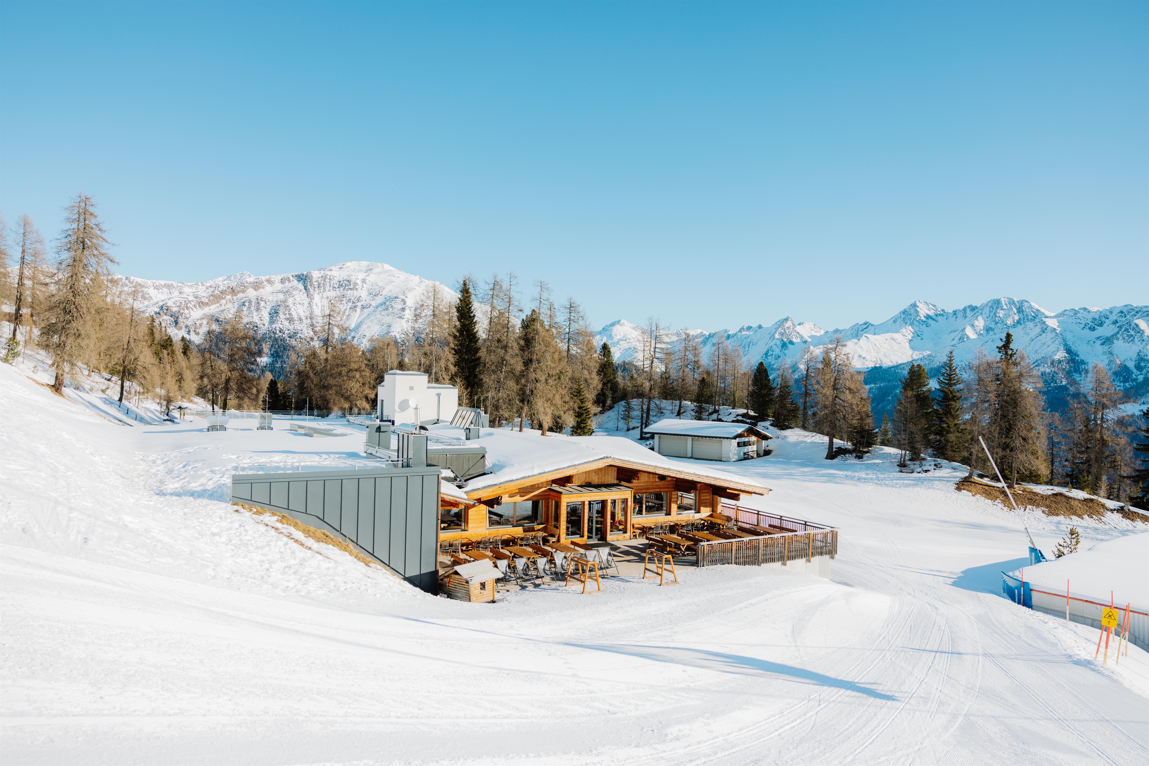 ...im Winter eine beliebte Hütte für einen gemütlichen Einkehrschwung auf der Sonnenterrasse oder beim offenen Feuer vor dem Kamin