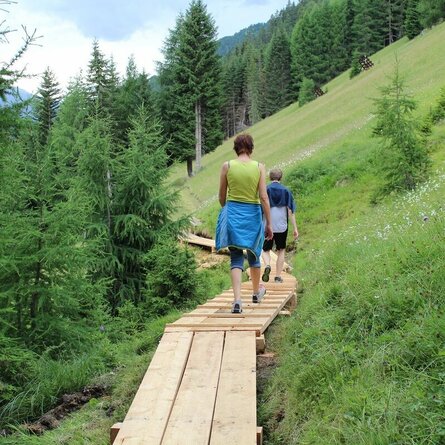 Entlang des Weges oberhalb des Tauernhauses führen auch fünf Nationalpark - Lehrwegtafeln durch das Biotopschutzgebiet, sie stellen die wertvolle Tier- und Pflanzenwelt des hinteren Dorfertales und der dort noch intakten Flachmoorlandschaft näher dar. Eine insgesamt unschwierige Wanderung mit viel abwechslungsreichen Informationsmöglichkeiten, ein Anstieg im letzten Streckenbereich verlangt jedoch ein gewisses Maß an Kondition, er erwarten Sie  lohnende Fotomotive und kultur- und naturhistorische Lehrwegsinformationen;