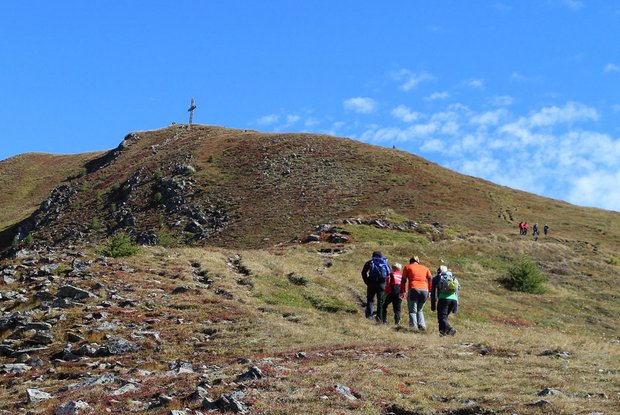 In St. Oswald, einem sehr sonnigen und aussichtsreichen Ortsteil von Kartitsch beginnt diese Tour. Anfangs durch schattigen Wald und später über sanfte Bergwiesen bis unterhalb des Dorfberg. Der Anstieg zum Gipfel ist etwas steiler und oben wartet einen grandiose Aussicht. Nun folgt eine leichte Bergab-Passage und ein flacher Abschnitt oberhalb der Leiter Wiesen, die im Sommer gemäht werden. Der Steig zum Pfannegg wird nun wieder etwas steiler und führt südseitig hinauf auf den breiten Bergrücken. Links lockt wie ein Eckzahn der Spitzenstein, der über einen Klettersteig erreichbar wäre. Wir folgen aber dem Steig zur einer Einsattelung vor dem Golzentipp, dessen Gipfelkreuz wir schon von Weitem ausmachen können. Die letzten Meter hinauf zum Gipfel sind wiederum etwas steiler. Hier genießen wir ein phantastische Bergpanorama, das von den Hohen Tauern mit dem Großglockner über die Lienzer Dolomiten und Karnischen Alpen und Sextner Dolomiten zu den Villgrater Bergen reicht. An klaren Tagen sieht man im Westen sogar noch die Gletscher der Stubaier Alpen.