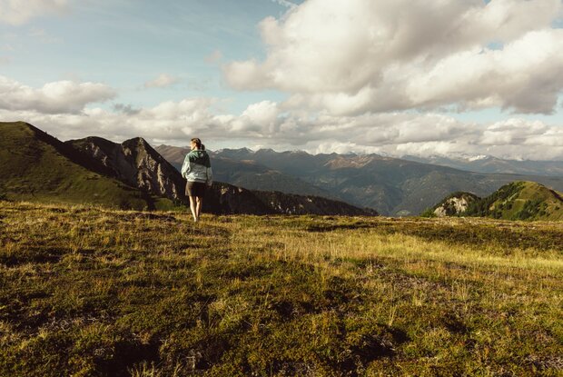 Von Leiten/Prünste über Gemeindestraße bis zur Kapelle in Eben. Über den Weg weiter zum letzten Bauernhof und dann in mehreren Kehren über Forstweg hinauf zu den baumfreien, traumhaft gelegenen Leiter Wiesen.
