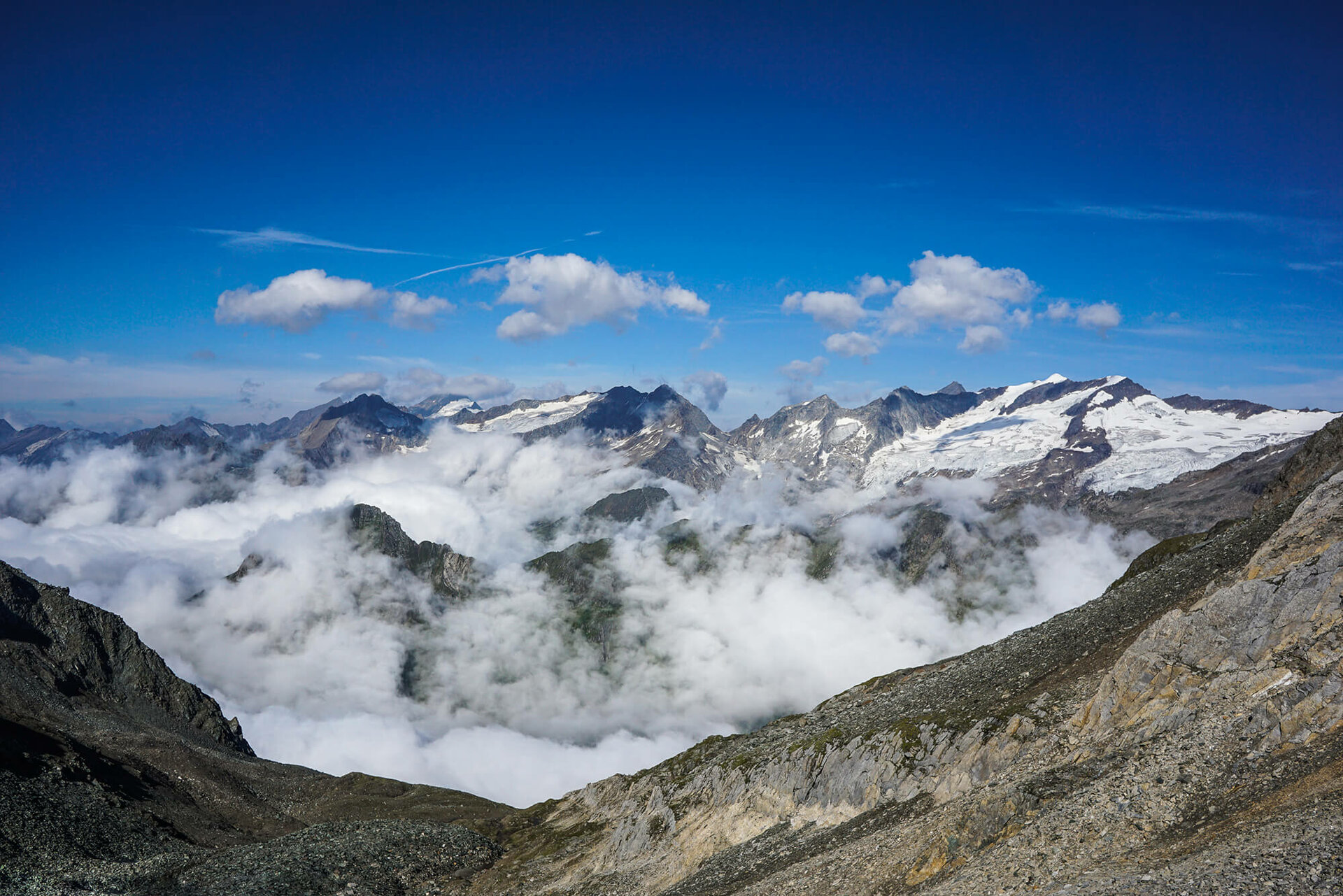 Im Gebiet der stolzen Dreitausender offeriert sich ein gewaltiges Panorama an majestätischen Gipfeln. Von der Essener-Rostocker Hütte aus hat man Aussicht auf mindestens zehn Eisriesen, von der Johannishütte bietet sich der schönste Ausblick auf seine Hoheit, den Großvenediger.