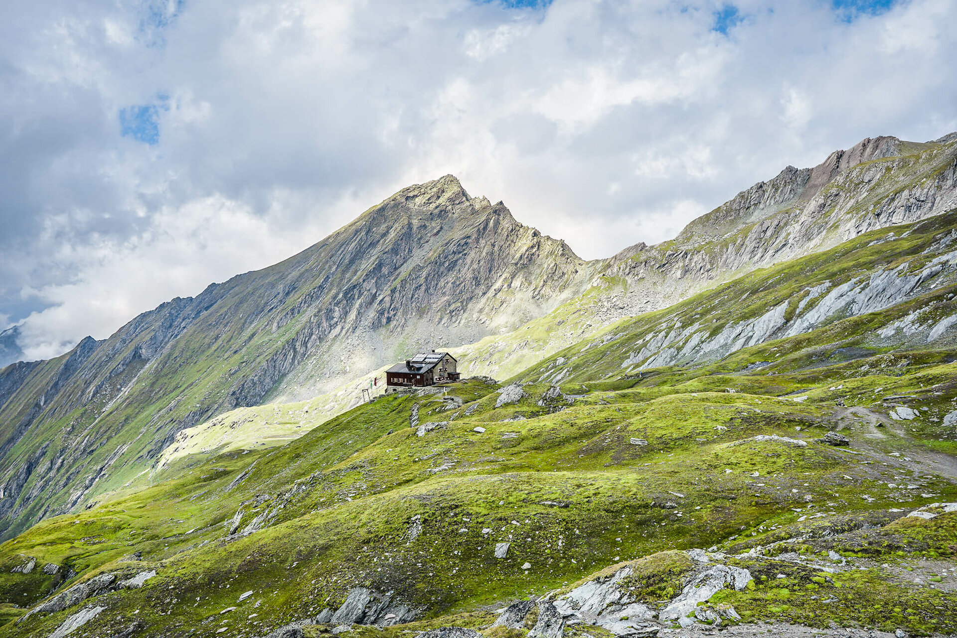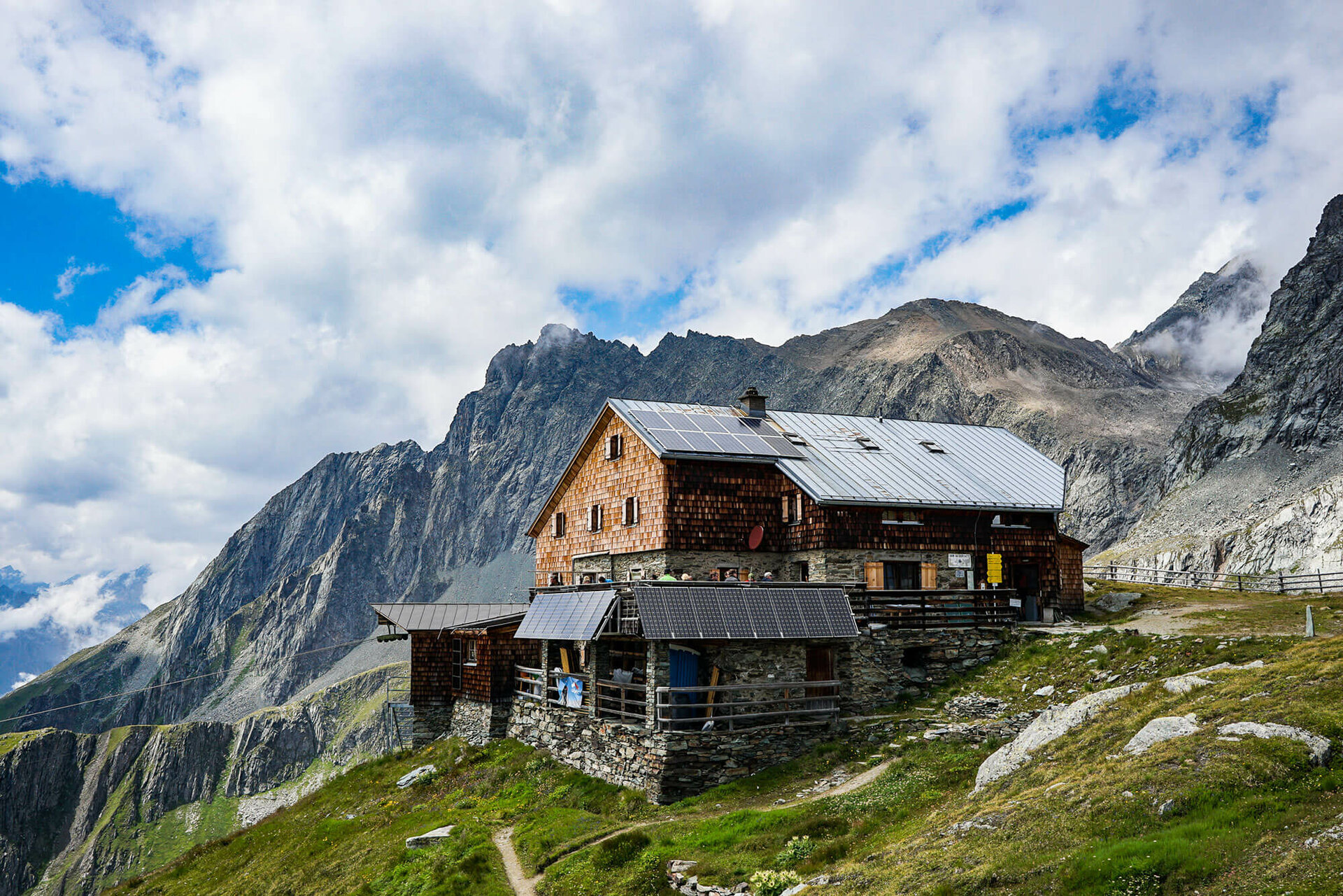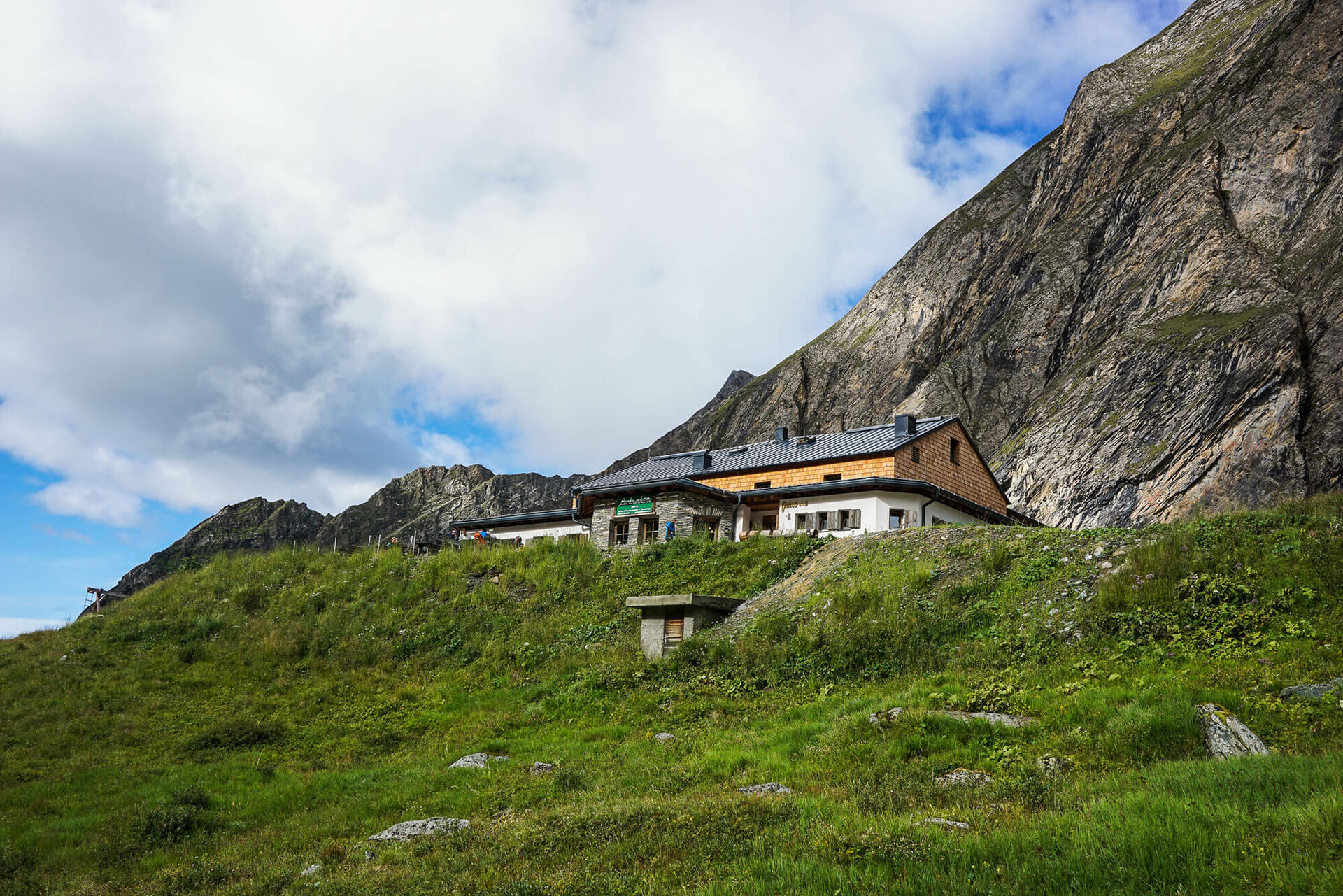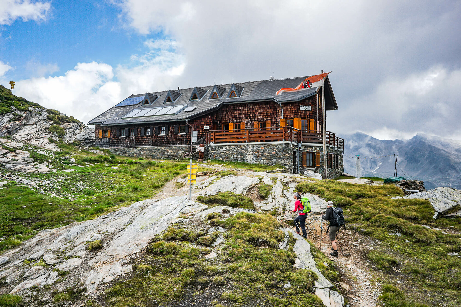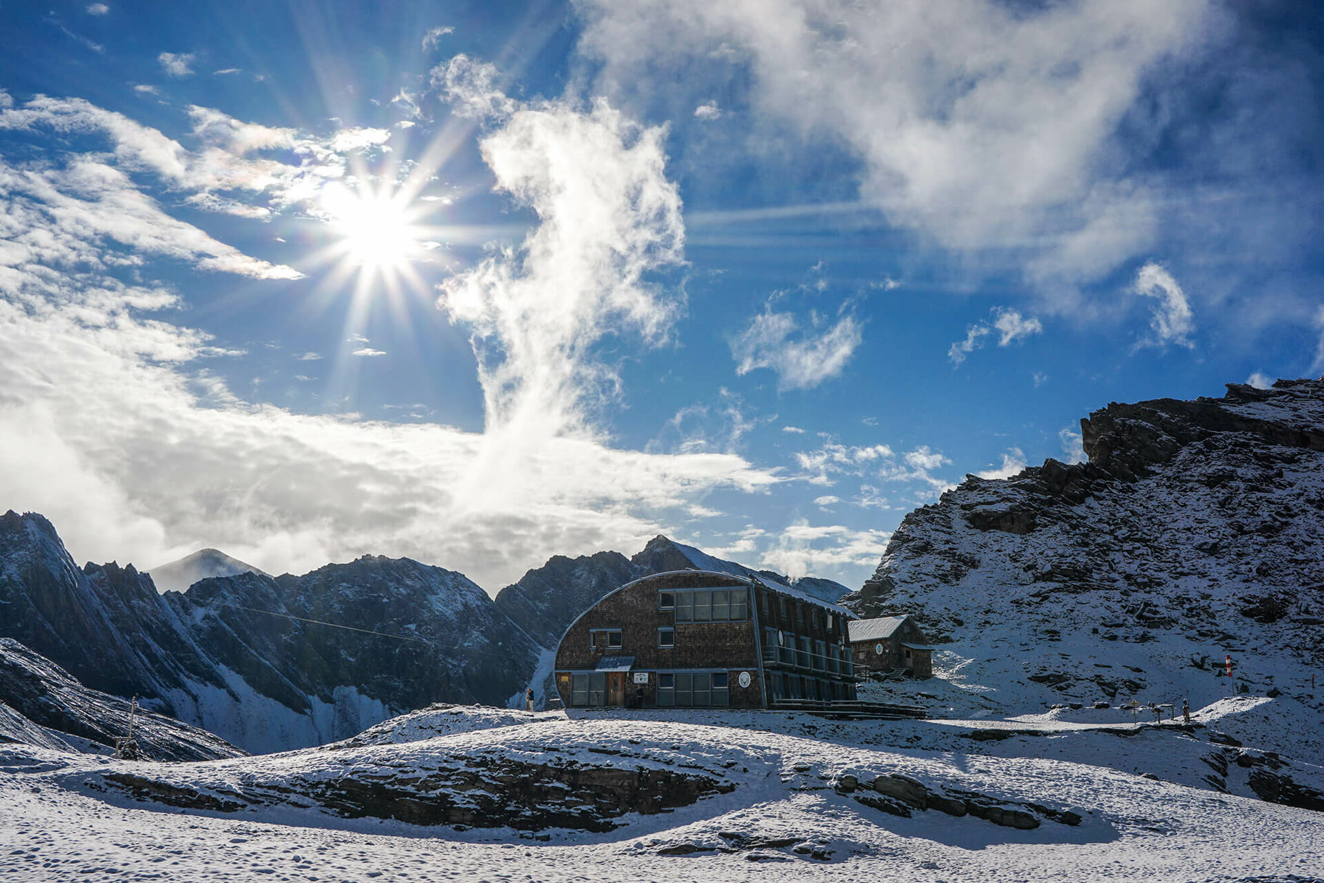 Der Standort der Bonn-Matreier-Hütte auf der Hochterrasse der Berge könnte nicht schöner sein: Sie liegt umgeben von einem Kranz von stolzen 3000ern am Rand des Nationalparks Hohe Tauern auf 2.750 Meter und ist ein wichtiger Stützpunkt für Wanderer auf dem Venediger Höhenweg.