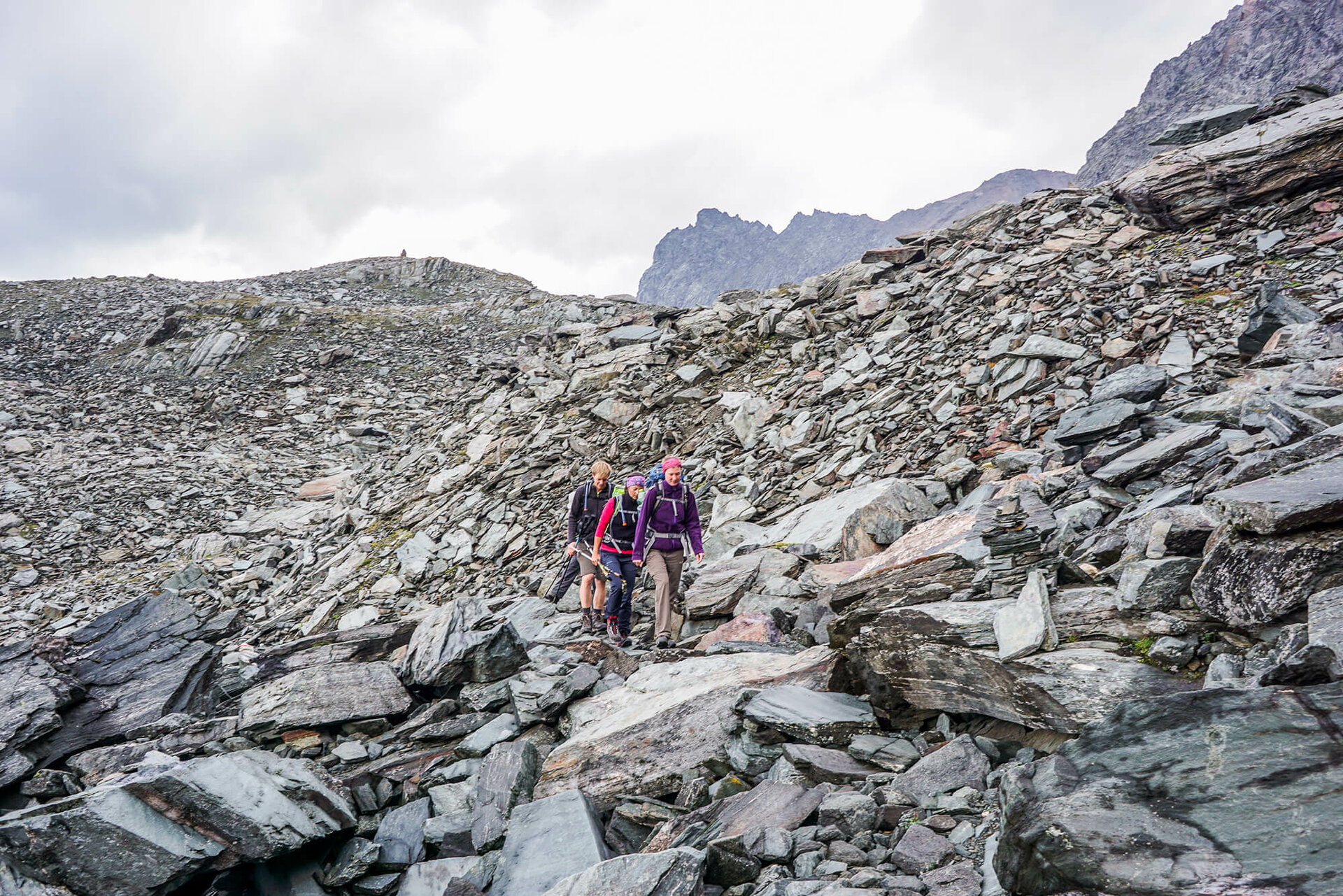 Schließlich erreicht man den Gradötzsattel (2.826 Meter), danach geht es hinunter, dem sogenannten Bloipalfen (2.684 Meter)entgegen. Anschließend weiter bergab über ein Wiesenstück und klammartig gelagerte Felsen.