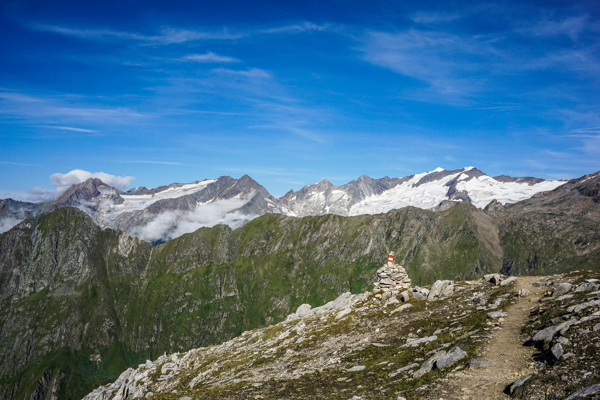 Schön wenn man beim Wandern immer die alpine Gletscherwelt im Blick hat. Der "Umweg" über die Kreuzspitze lohnt mit einem besonders schönen Ausblick auf den Großvenediger.