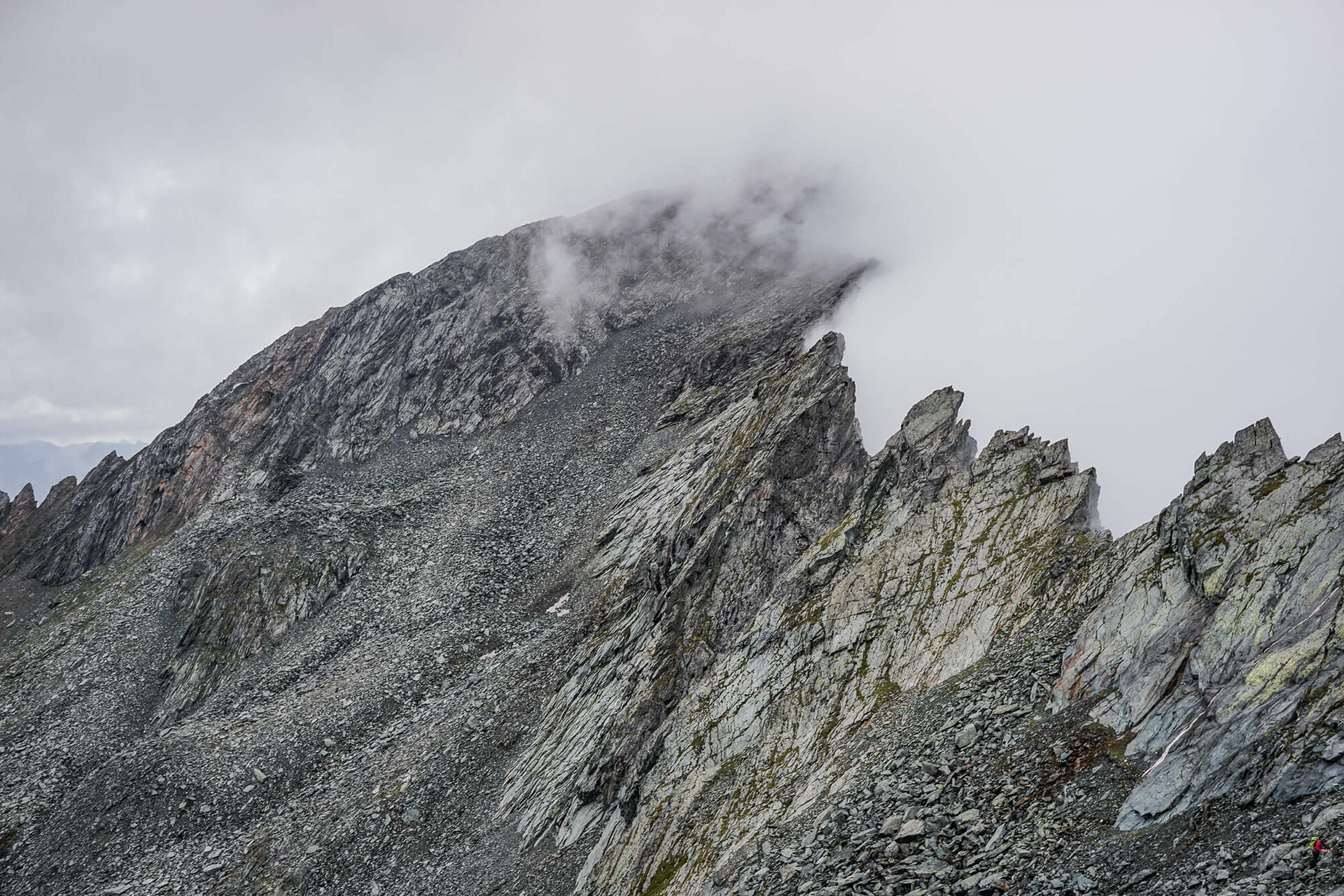 Bald blickt man auf den rauschenden Teischnitzbach hinunter und sieht die Eistürme des Teischnitzkees aufblitzen. Es gilt noch einige steile Wiesenhänge, Rippen und Rinnen zu überwinden, ehe man sich abschließend über Schutt und Steinblöcke von Süden der Stüdlhütte nähert (2.802 Meter).