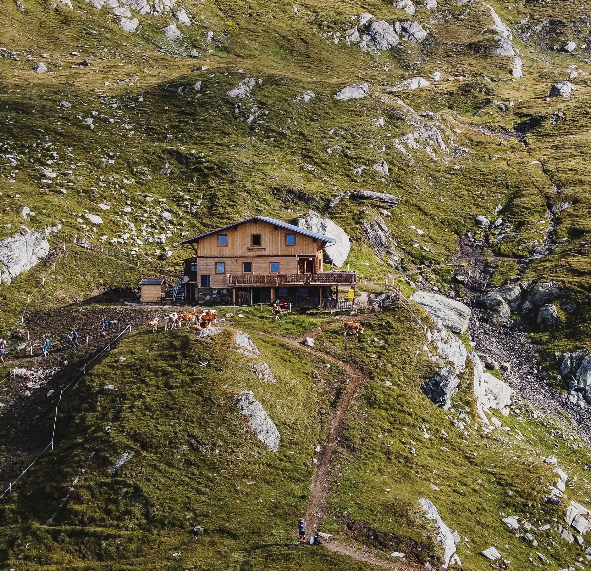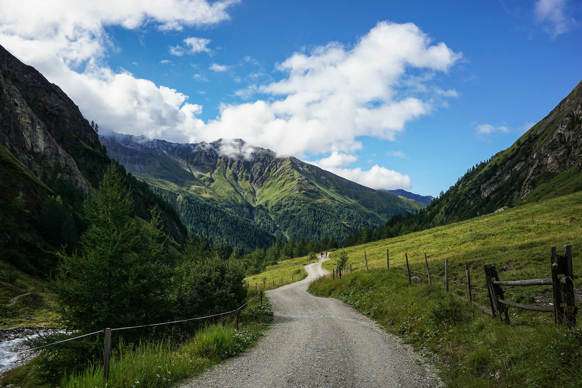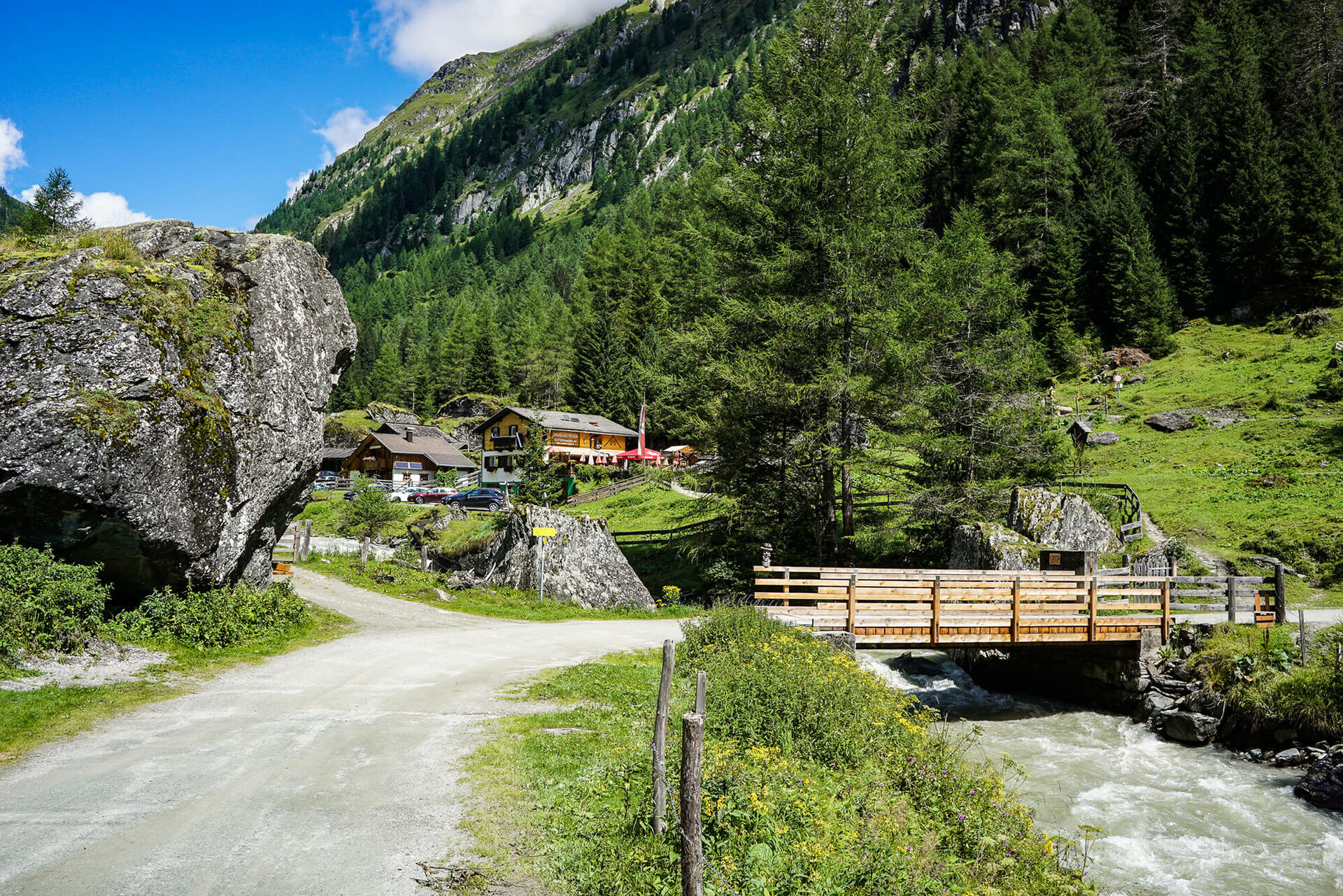 Schließlich geht es über den Dorferbach zum Etappenziel, dem gemütlich eingerichteten Kalser Tauernhaus (1.755 Meter).