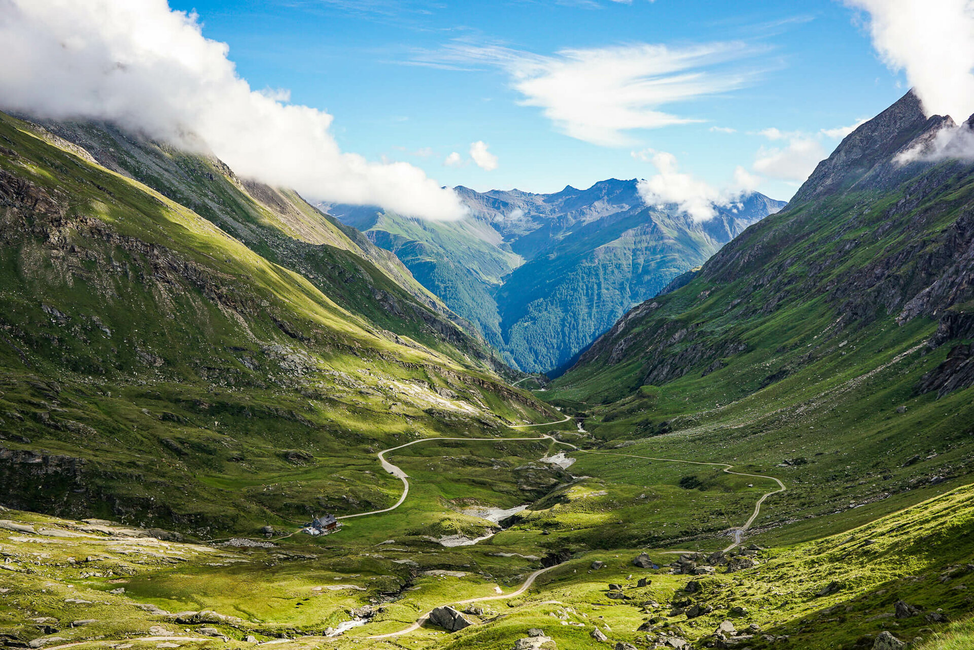 Nach einer Nacht unterm Großglockner – näher als auf der Stüdlhütte kommt man seiner Majestät auf dem Adlerweg nicht mehr – führt die Route ab jetzt vorwiegend in Richtung Süden. Über den Johann-Stüdl-Weg überwindet man die Pfortscharte und winkt kurz, mit Blick auf die Salmhütte, nach Kärnten hinüber. Weiter geht es auf dem Luckner Weg zur stattlichen Glorer Hütte am Berger Törl, danach abwärts durch das wiesenreiche Tal des Bergerbachs. Schließlich erreicht man das sonnig gelegene Lucknerhaus. Hier endet der Adlerweg, die Kalser Glocknerstraße schlängelt sich von dort abwärts. Aber zuerst einmal rasten, sich stärken und ausgiebig das schöne Gefühl genießen, am Ziel zu sein!