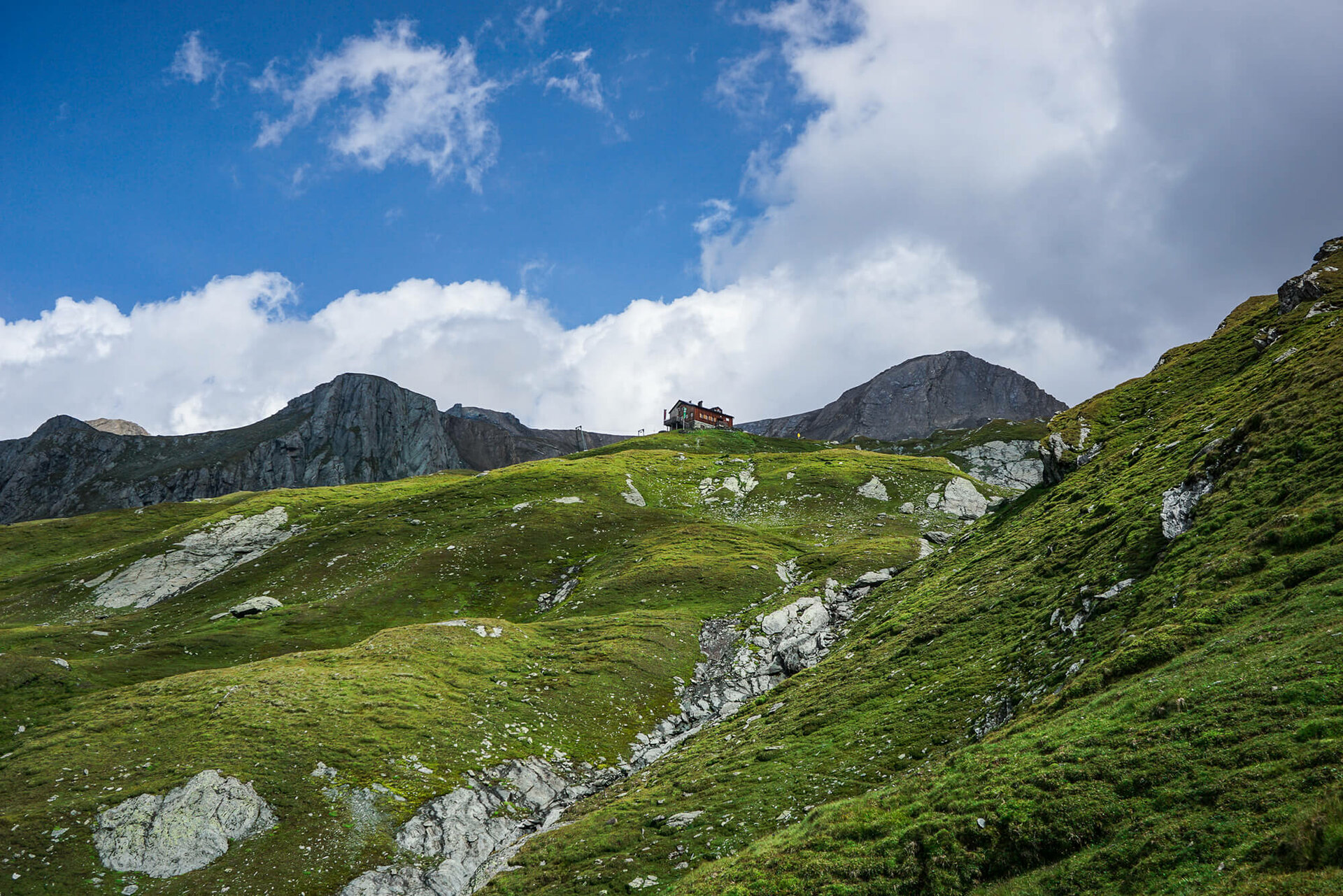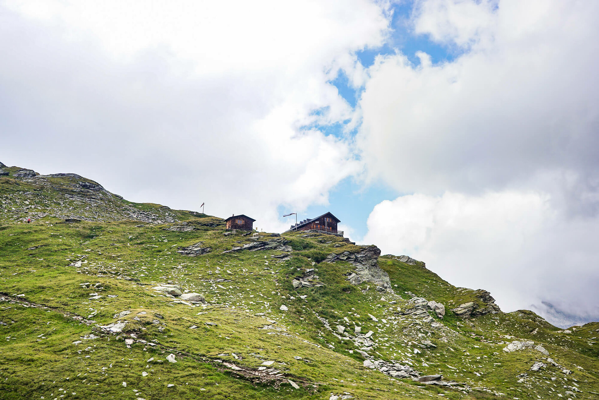 Von hier geht es am Luckner Weg Richtung Süden, auf grünen, welligen Bergmatten u.a. am Oberen Glatzsee vorbei und man erreicht nach einiger Zeit die Glorer Hütte am Berger Törl (2.651 Meter).