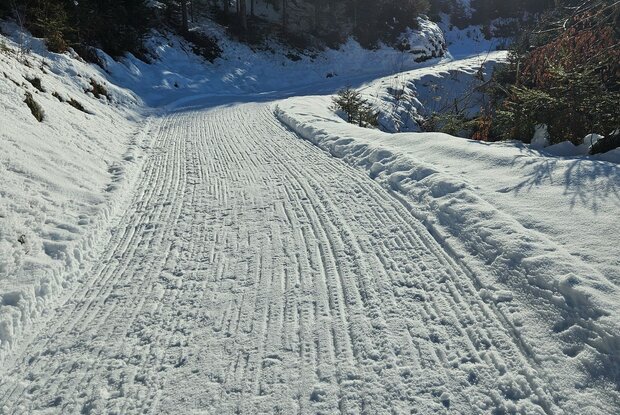 Aufstieg über die Forststraße (ca. 2 km), nicht über den Rodelweg! Auch für Familien geeignet. 120 m langer, beleuchteter Tunnel. Die Bahn ist nur bei ausreichendem Naturschnee in Betrieb.