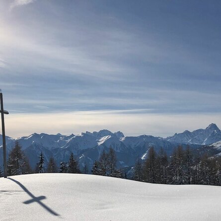 Von der Haltestelle des Skibusses beim Lackenstüberl startet die Schneeschuhtour zum Wetterkreuz oberhalb des Obersees. Weiter geht es bis an die Grenze zu Südtirol mit einem wunderbaren Blick auf den Antholzersee – entlang der Grenze weiter zum Heimkehrerkreuz und dann zur Oberseehütte – die zur Einkehr einlädt. Nach einer kleinen Stärkung geht es am Westufer des Sees zurück zum Ausgangspunkt.