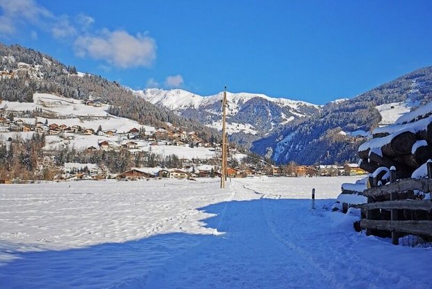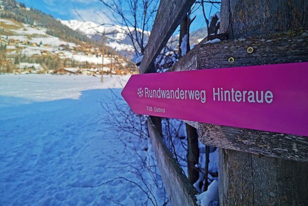 Der Rundwanderweg Hinteraue beginnt bei der Tourismusinformation Matrei i. O. und führt in den Ortsteil Prossegg. Dieser weitläufige Bereich ist durch seine flachen, großen Felder ideal, um mit seiner Familie eine Winterwanderung zu machen. Die markanten Baumreihen (im Volksmund auch "Windgürtel" genannt) in diesem Bereich schützen die umliegenden Felder vom Tauernwind. Im zugefrorenen Tauernbach spiegeln sich die glitzernden Sonnenstrahlen und das leise Plätschern lässt dich zur Ruhe kommen.
