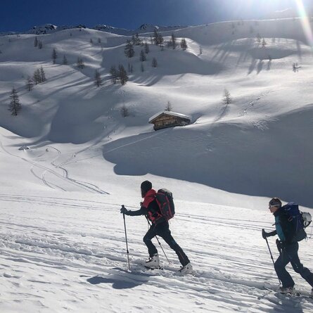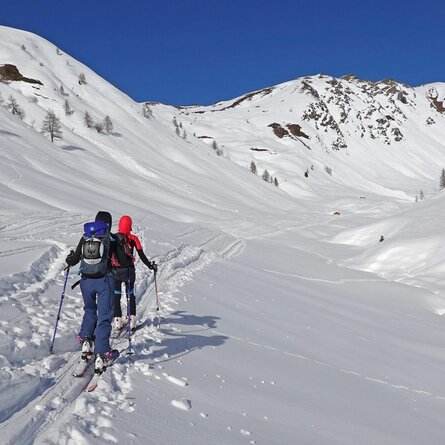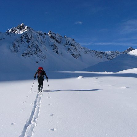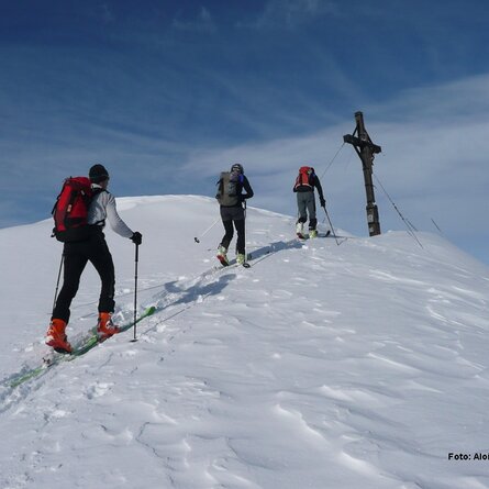 Der Karnische Kamm bietet mit einer Länge von 100 Kilometern ein sehr großes Tourenpotenzial von leicht bis ganz schwer oder von überlaufen bis abenteuerlich. Mit dem Spitzköfele, in der Schattseite von Obertilliach gelegen, soll eine etwas gemütlichere und durchaus auch für Anfänger machbare Skitour herausgegriffen werden, wo auch ein Gipfelsieg mit herrlichem Rundblick garantiert werden kann. Den Ausgangspunkt bildet die Goller Säge, zwei Kilometer östlich von Obertilliach im Ortsteil Bergen gelegen. Start ist eine kleine Brücke auf der Rückseite des Sägewerks (Wegtafeln beachten). Von dort führt die Spur anfangs kurz über den Grenzlandwanderweg, dann linker Hand über den Forstweg ins Rollertal. Nach 1 - 1 ½ Stunden erreichen wir die Rollertalalm, wo das Gelände lichter und freier wird. Der weitere Anstieg folgt dem Güterweg bis ca. 2.000 m, wo dann die Skispur in östliche Richtung abzweigt. Über einen etwas steileren, mit Stauden durchsetzten Hang erreichen wir in weiterer Folge über schönes Muldengelände den Gipfelgrat des Spitzköfeles. Dieser kann bei günstigen Verhältnissen auch mit Ski bis zum höchsten Punkt (Kreuz) verfolgt werden. Gehzeit drei bis vier Stunden.