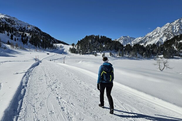 Der Winterwanderweg am Staller Sattel ist auf der im Sommer asphaltierten Straße angelegt und führt durch eine eindrucksvolle Hochgebirgslandschaft auf über 2.000 m Seehöhe. Umgeben von verschneiten Gipfeln und stiller Natur genießen Winterwanderer traumhafte Ausblicke und eine besondere Ruhe fernab vom Trubel. Der Weg ist ideal für genussvolle Winterspaziergänge und bietet ein unvergessliches Naturerlebnis an der Grenze zu Südtirol, welche zu Fuß erreicht werden kann. Der Weg am Obersee besticht zudem durch viele Sonnenstunden.