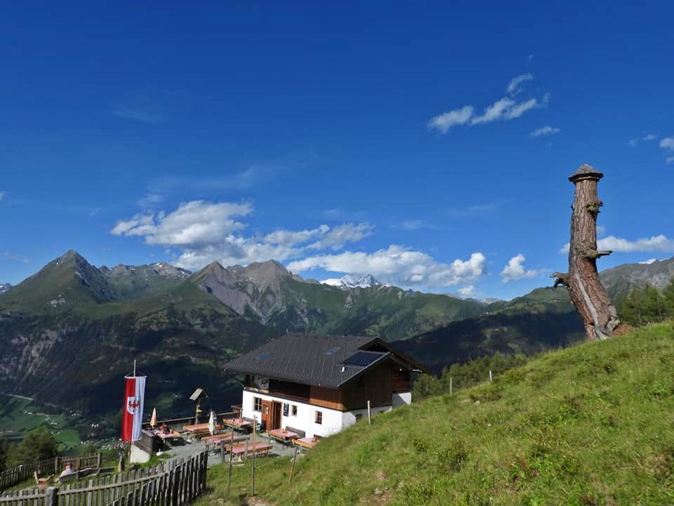 La malga Zunigalm si trova lungo il sentiero Lasörling Höhenweg, terrazza soleggiata, meravigliosa vista panoramica.