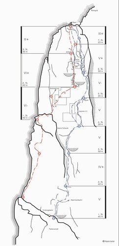 Über die Abseilpiste zum Einstieg.