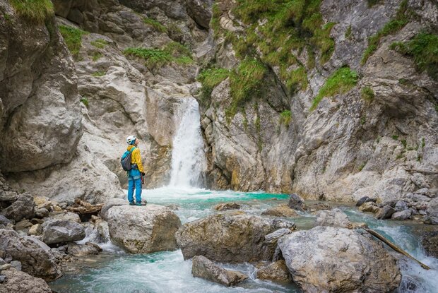 Avvicinamento: L'avvicinamento avviene tramite la via ferrata Galitzenklamm (C).