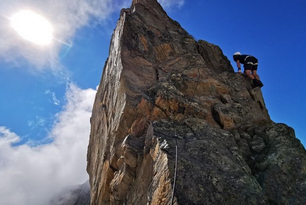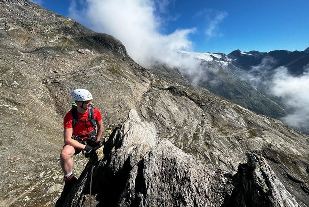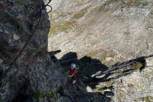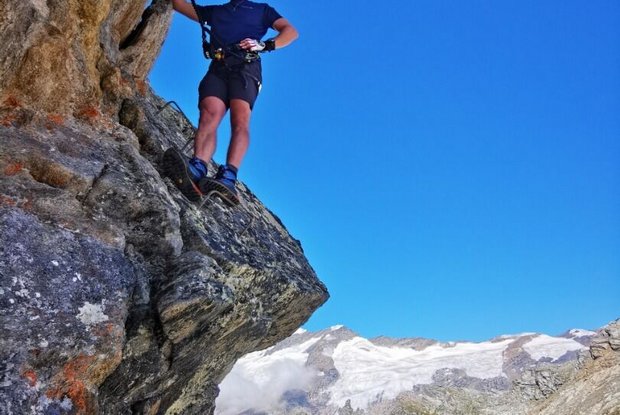 La via ferrata non è affatto semplice e non è adatta a tutti. Richiede una certa esperienza. Vista meravigliosa dalla vetta sul Großvenediger.