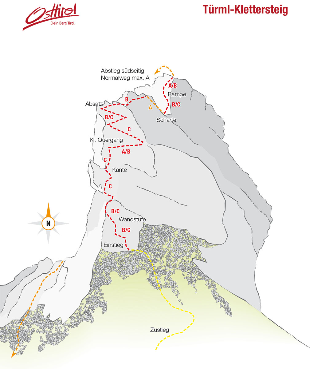 La via ferrata è stata allestita nel giugno 2001 dalle guide alpine del Venediger. Si tratta di un sentiero piacevole, sulla tratta da Johannishütte 2.121 m a Essener-Rostockerhütte 2.208 m. La via ferrata passa per Türmljoch 2.790 m sul cosiddetto Türml 2.845 m. Una vista meravigliosa dei giganti di ghiaccio della Maurertal e del Großvenediger ricompensa la scalata sulle alte vette.