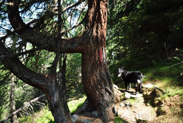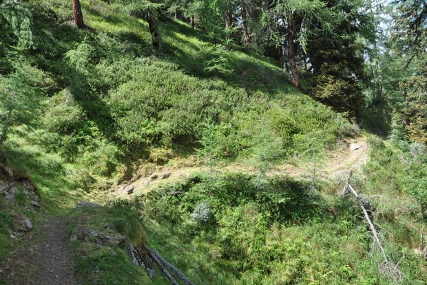 Attraverso il sentiero Bärensteig si ritorna al sentiero Goldriedriese nella fresca ombra della foresta. Il Bärensteig deriva il suo nome da un evento del 1971, quando l'ultimo orso bruno che viveva allo stato selvaggio in Austria fu ucciso qui sul Klaunzerberg. Oggi l'orso è di proprietà della società di storia locale Medaria. Sulla via del ritorno, i rifugi Roatz Bod'n Hitte, Kuenzer Alm e Jagatee Stub'n invitano a fare una pausa.