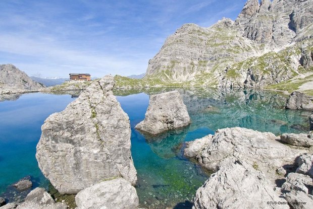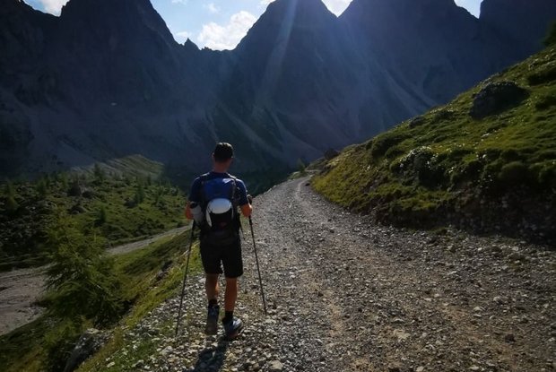La via del ritorno è attraverso la strada sterrata. Questo può essere abbreviato attraverso diversi sentieri (seguire le indicazioni per la Dolomitenhütte).