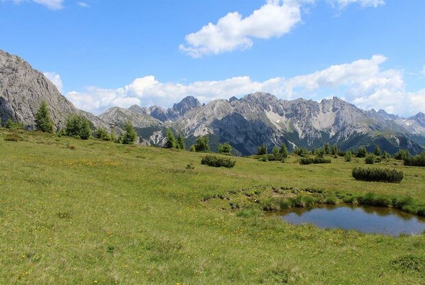 Der Weg beginnt in St. Oswald bei Kartitsch und führt über den Dorfberg zum Golzentipp. Weiter geht's - nach einer Übernachtung auf der "Connyalm" oberhalb von Obertilliach - über den Kofelspitz zum Gontrunsattel. Hier kann man wählen: entweder im Tal zur Ochsengartenalm und wieder hinauf nach Gumpedall oder gleich etwas steiler ansteigend auf die Tamerlanhöhe und von dort ein paar steilere Schotterinnen querend dorthin. Der weitere Weg führt am Fuße des mit zwei ausgeprägten Schotterinnen liegenden Eggekofelmassivs hinüber zum Hals oberhalb der Kircher Almen und von dort hinunter zur Lotteralm. Hier gibt's eine Notunterkunft, sollte es für die weitere Etappe zum Tuffbad über den Guggenberger Sattel schon zu spät sein.