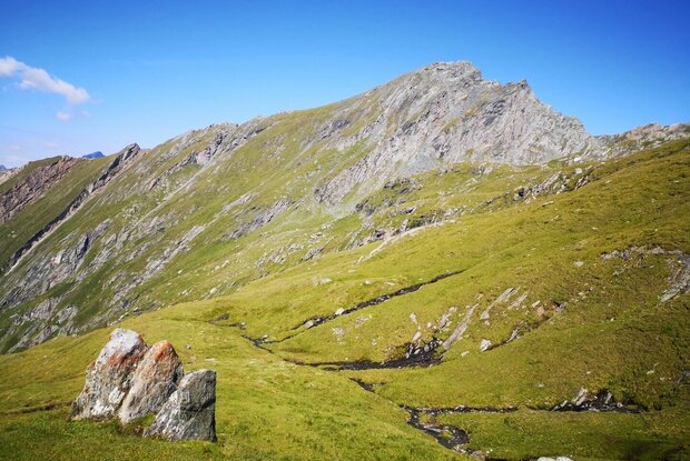 Am besten startet man diese Etappe beim Parkplatz im Weiler Glanz, dann spart man sich zwei Stunden Anmarsch. Von Matrei i.O. kann man mit dem PKW (Taxidienst auf Anfrage) in 20 Minuten dorthin gelangen. All jene, die auch diesen ersten Streckenabschnitt zu Fuß bewältigen wollen, gelangen über den wenig befahrenen Fahrweg von Matrei über Hinterburg zum Parkplatz. Vom Parkplatz in Glanz kommt man in 1 ½ bis 2 Stunden zur Äußeren Steiner Alm und in weiteren 2 bis 2 ½ Stunden zur Sudetendeutschen Hütte. Der Steig führt großteils durch einen Wald mit uralten Lärchen, vorbei an der Köfler-Almhütte (Privatalm). Im Bereich der Ranzeralm quert man zweimal den Fahrweg. Etwas oberhalb der Lackner-Almhütte beginnt ein Karrenweg, der an einer Quelle vorbeiführt, ehe er von Osten nach Westen die Edelweißwiese durchzieht. Wer nicht durch den Wald wandern möchte, kann auch vom Parkplatz Glanz entlang der Forststraße bis zum Beginn der Edelweißwiese gehen. Nach einer Felskante fällt der durch ein Geländer geschützte Steig in den lichten Lärchenwald leicht ab. Über den Steinerbach gelangt man zu den Almhütten der Äußeren Steiner Alm (1.914 Meter), von der Äußeren Steiner Alm geht es in der flachen Trogtalsohle nordöstlich weiter in Richtung Talschluss. Kleine Lärchenhaine und gewaltige Grünschieferblöcke prägen diesen romantischen Wegabschnitt. Am Ende des Talschlusses führt eine Materialseilbahn zur Sudetendeutschen Hütte, hier befand sich früher eine Förderstätte des Eisenerz-Bergbaus, deshalb wird der Talwinkel als „Schmelzhütte“ bezeichnet. Der Steig zur Sudetendeutschen Hütte führt zuerst nah am Steinerbach hinauf, dann windet er sich in Kehren über die Wiesenhänge empor, wobei man den Nussingkogel zur linken und die Bretterwandspitze zur rechten Seite hat. Schließlich wird das Gelände mit seinen von den Gletschern geformten Kuppen etwas flacher und schon befindet man sich im Nahbereich der geräumigen Sudetendeutschen Hütte (2.650 Meter) inmitten der Granatspitzgruppe.