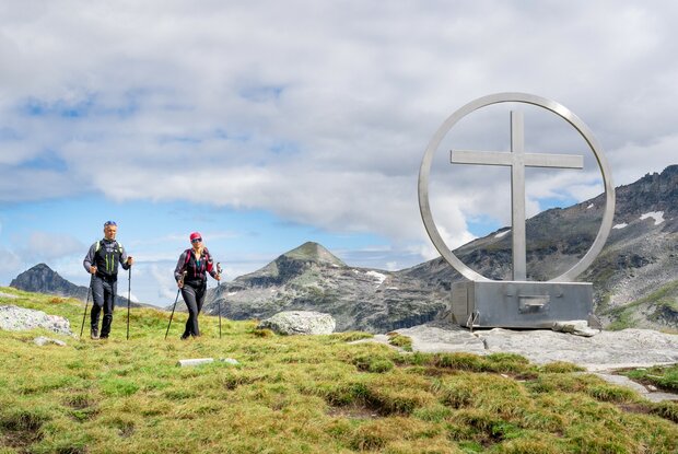 Anschließend geht es stetig bergab, man passiert einige Felsabschnitte, Geröllhänge und Bäche. Auf ca. 2.500 Meter Höhe folgt man der linken Abzweigung nach Norden, über den Silesiaweg, AV 517, in ein Gebiet mit weitläufigen Bergschafweiden, bis zum Schwarzsee. Kurz darauf erreicht man einen besonderen Naturkraftplatz, den Gipfel des Spinewitrol, mit seinem markanten Gipfelkreuz. Über den AV 514 A steigt man die Hintere Ochsenalm weiter über Wiesenhänge abwärts, bis man wieder auf den Wanderweg AV 514 trifft. Über eine letzte Steilstufe führt der Pfad im Zickzack am Stotzwasserfall vorbei und durch ein kleines Zirbenwäldchen und Staudenvegetation bis zum Etappenziel, dem Kalser Tauernhaus auf 1.755 Meter Höhe.
