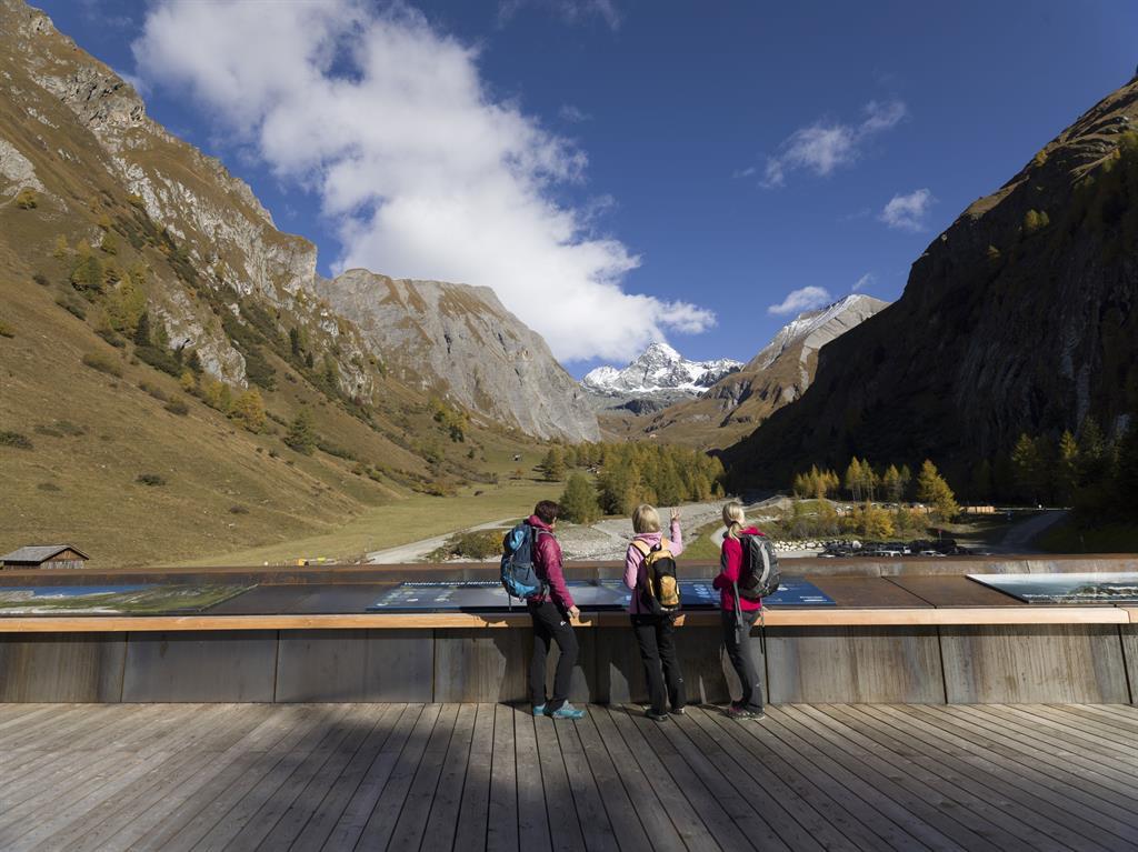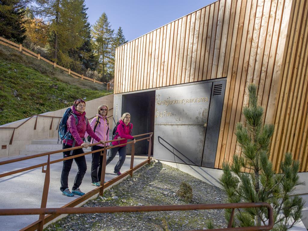 Dort können Sie den spektakulären Panoramablick auf den 3.798 m hohen Großglockner in seiner vollen Pracht genießen. Die Ausstellung bietet Wissenswertes über die BIG FIVE des Nationalparks hohe Tauern – Steinbock, Gams, Murmeltier, Steinadler & Bartgeier.