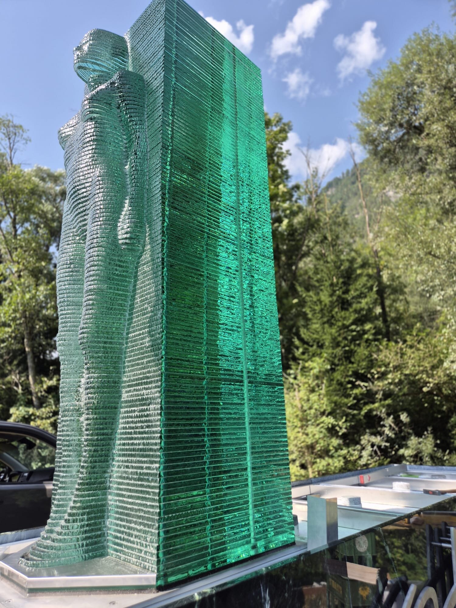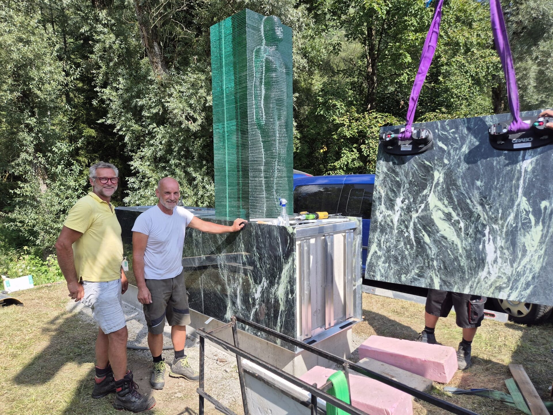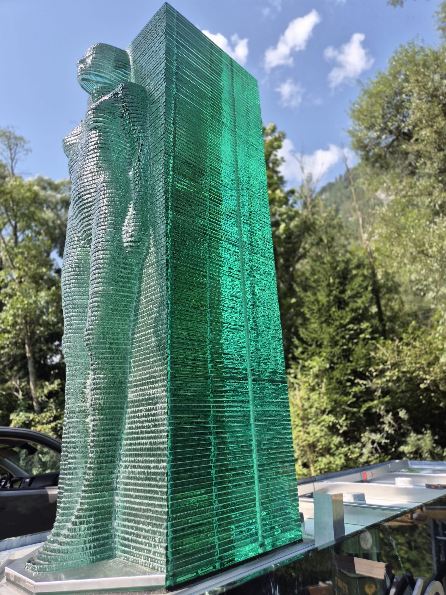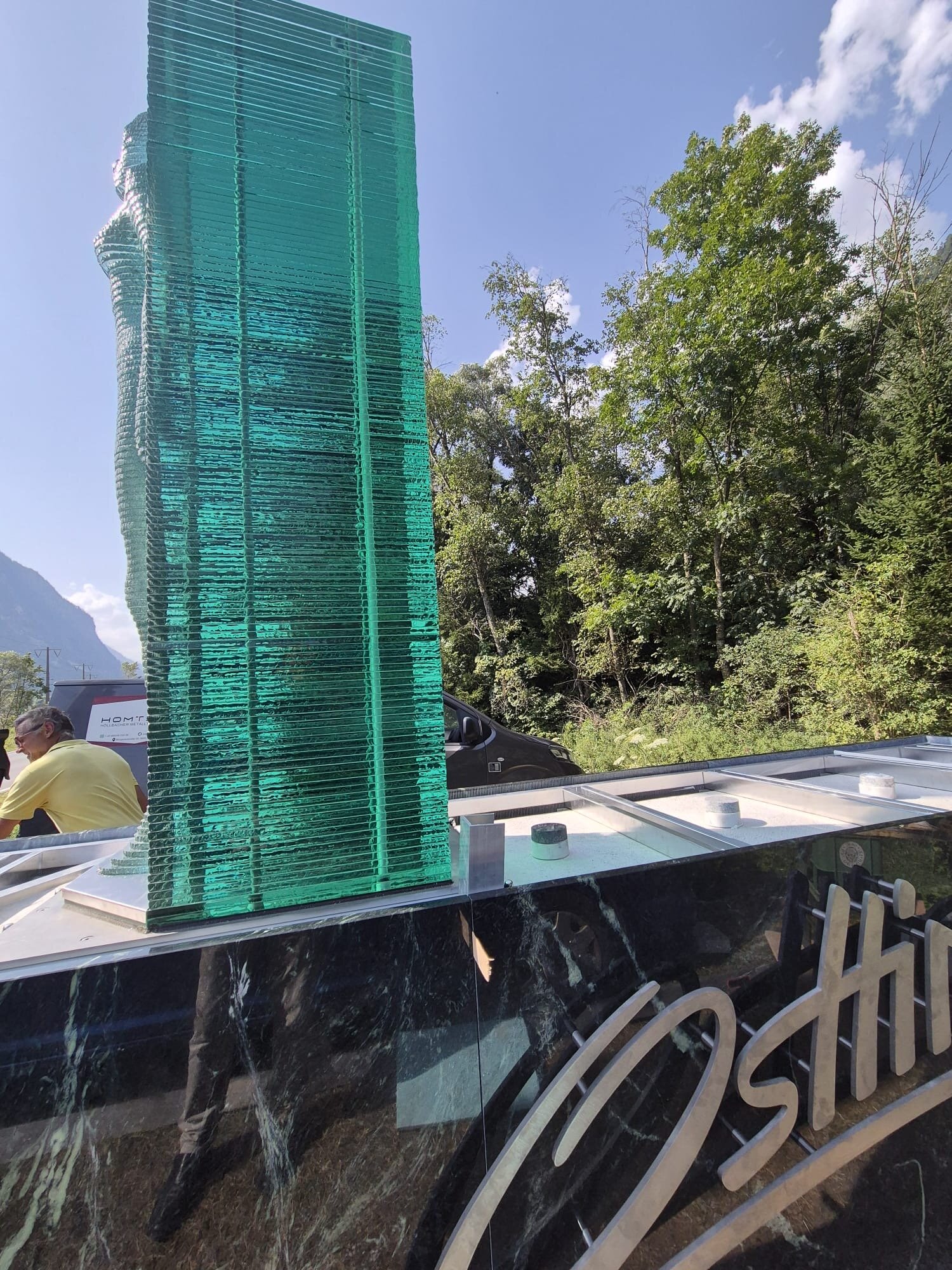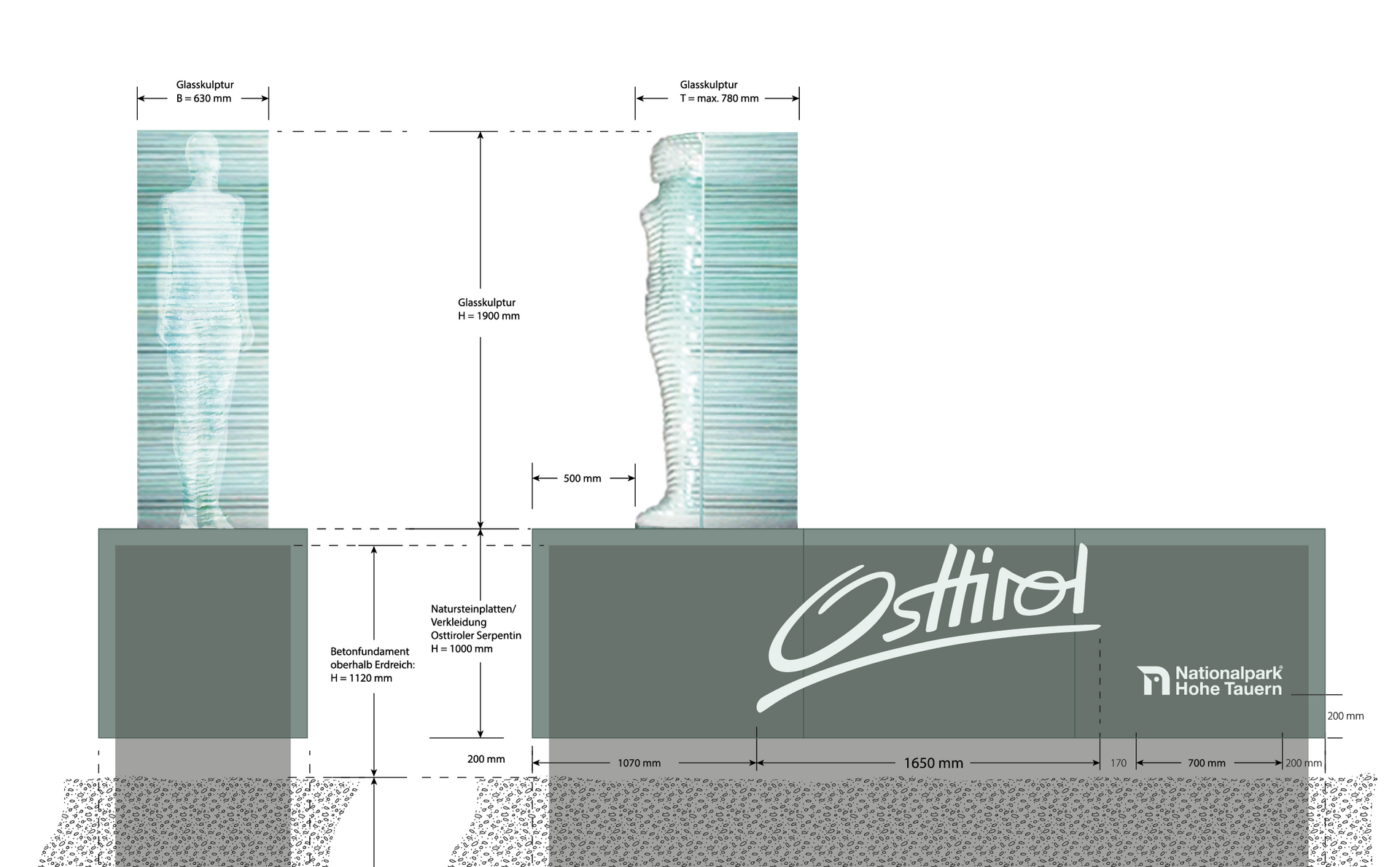 Die Skulptur “Mutter Erde” wurde vom Osttiroler Künstler Georg Planer entworfen, der auch bereits das Portal am Felbertauerntunnel gestaltet hat. Für die technische Umsetzung zeichnete die Glas- und Metallwerkstatt GEMOS verantwortlich.