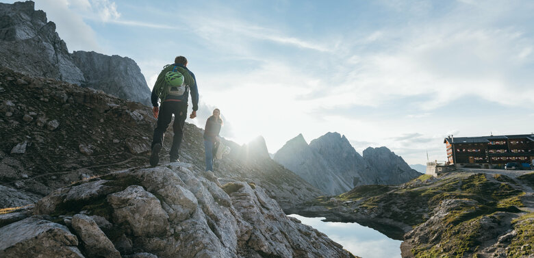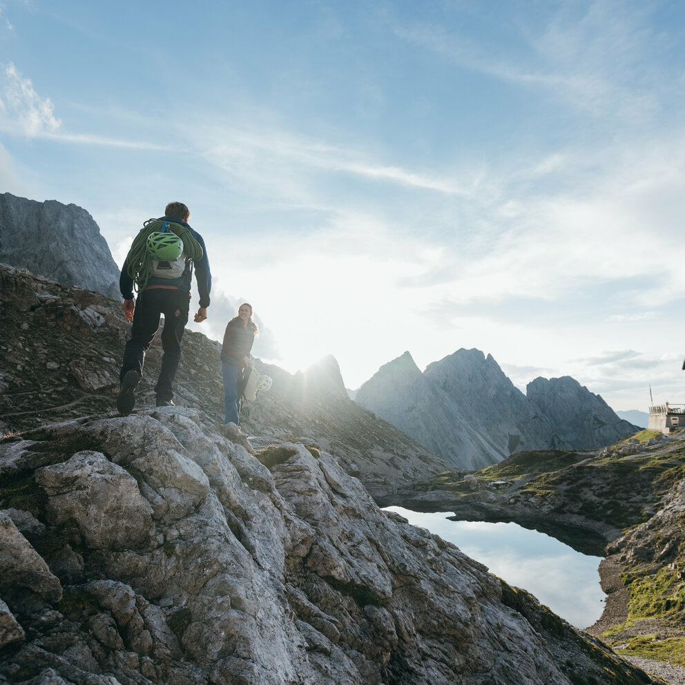 zum Klettern. Das Gebiet rund um Karlsbader Hütte (2.260 Meter) und Dolomitenhütte (1.616 Meter) bietet