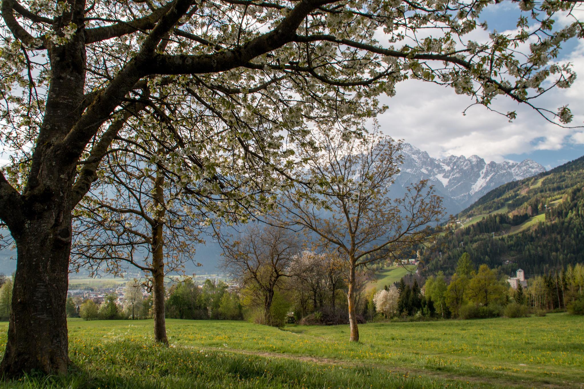 von Lienz aus Richtung Norden Zettersfeld/Thurn, Kirche St. Andrä, ca. 1,5 km auf der Thurner-/Patriasdorfer-Landesstraße (L321) oberhalb von Lienz;