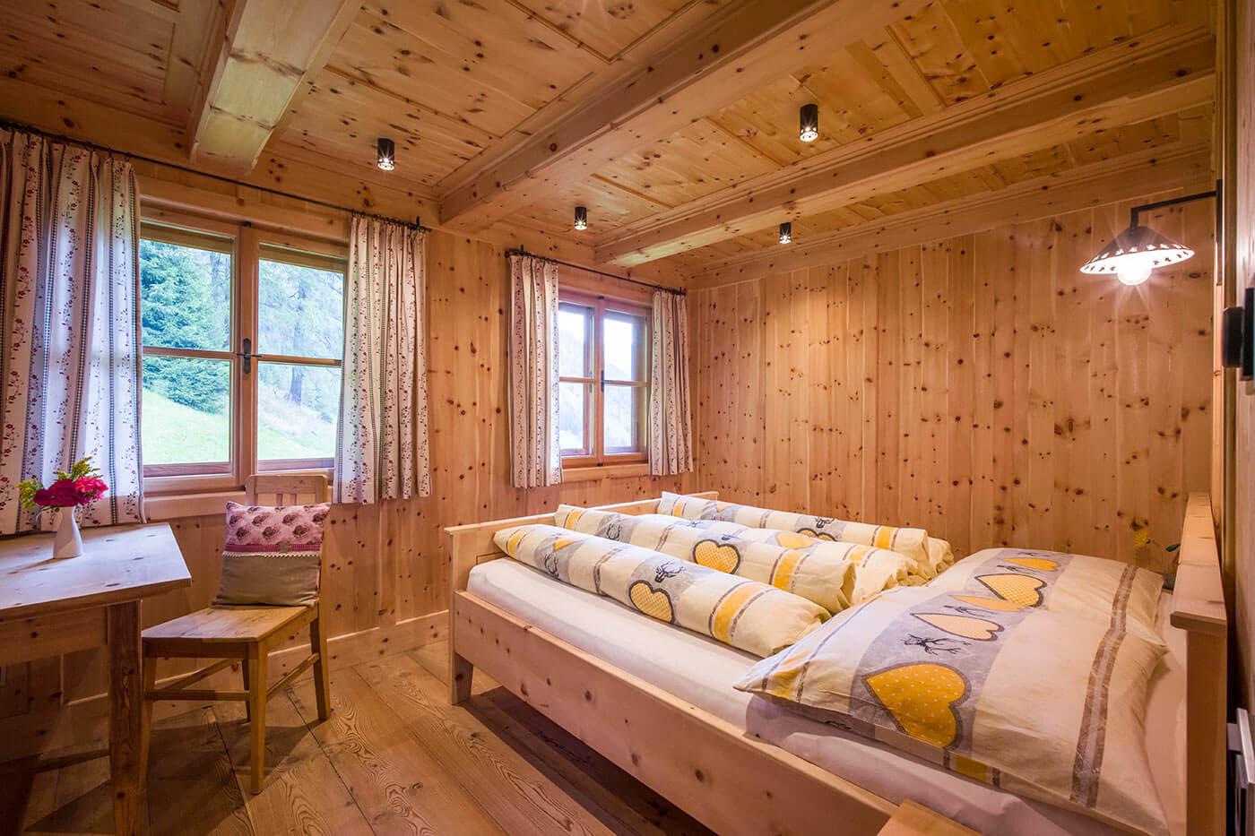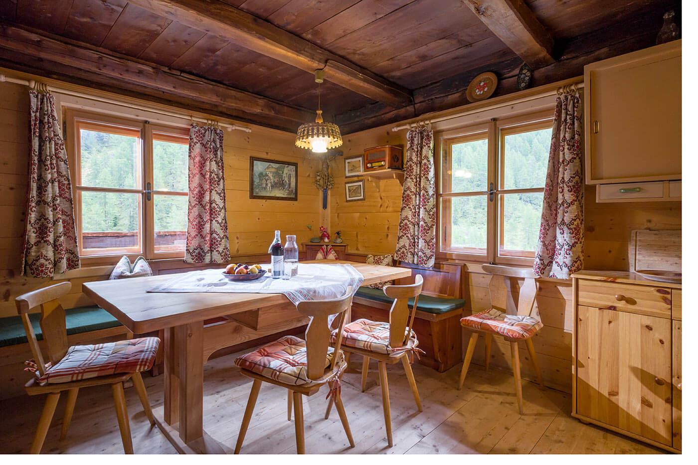 Unsere gemütliche, gepflegte Almhütte mit Sonnenterrasse liegt etwas oberhalb des eigentlichen Dörfleins. In der romantischen Almstube lassen Sie abends neben dem Holzherd den Tag Revue passieren. Bergtouren in würziger Almluft belohnen Sie mit grandiosen Ausblicken, begleitet vom Rauschen der Wildbäche inmitten blühender Bergwiesen.