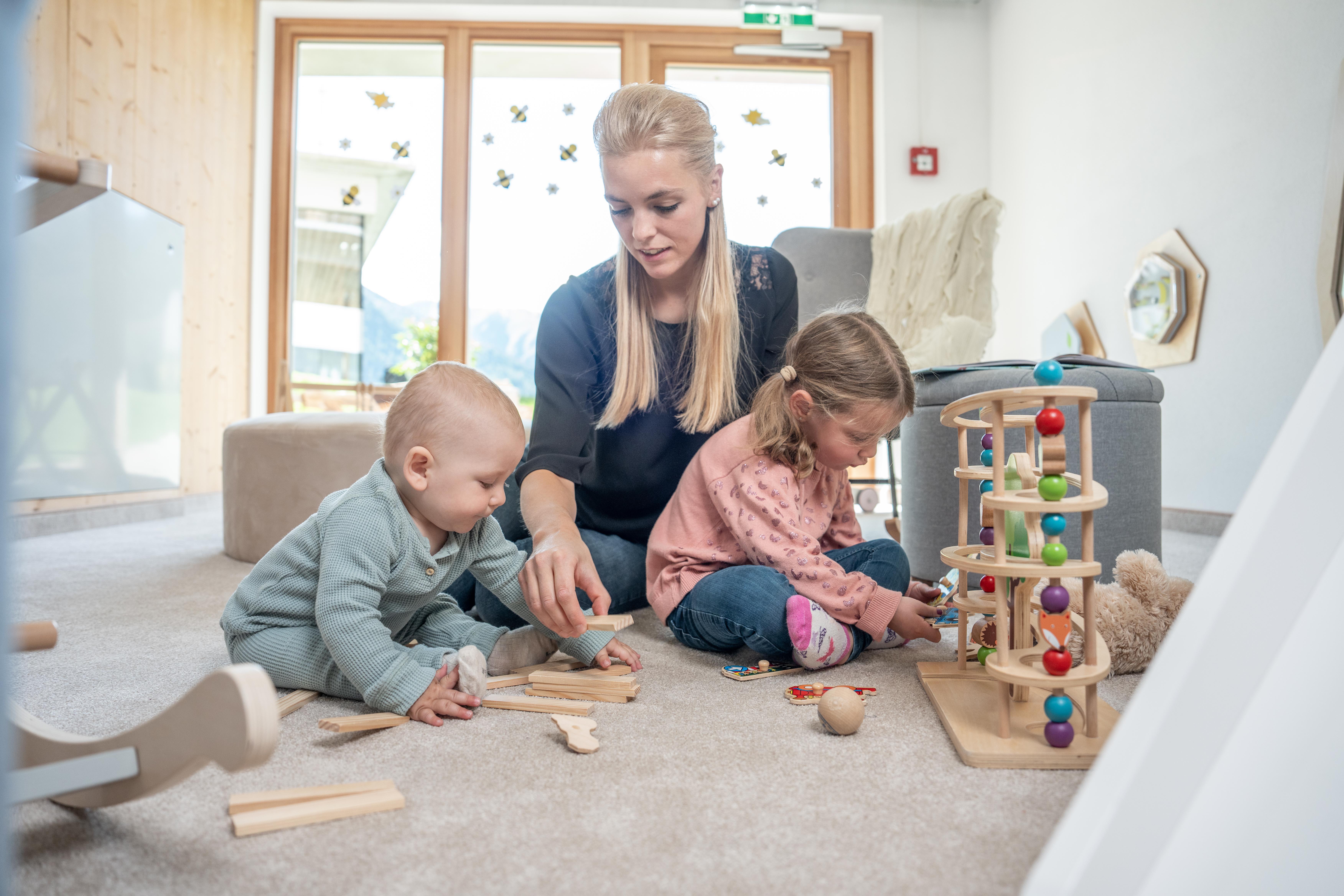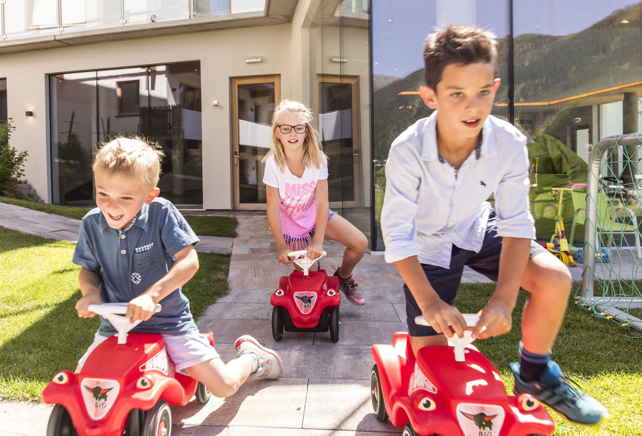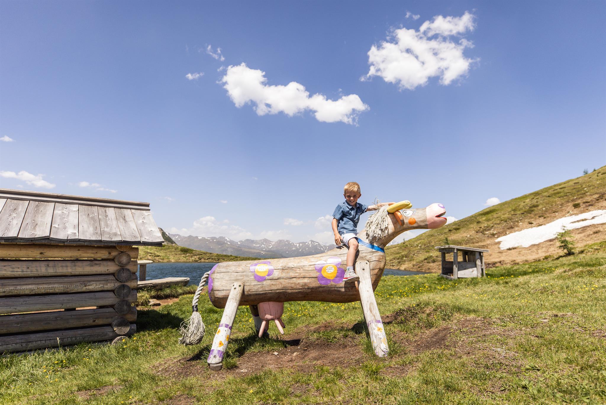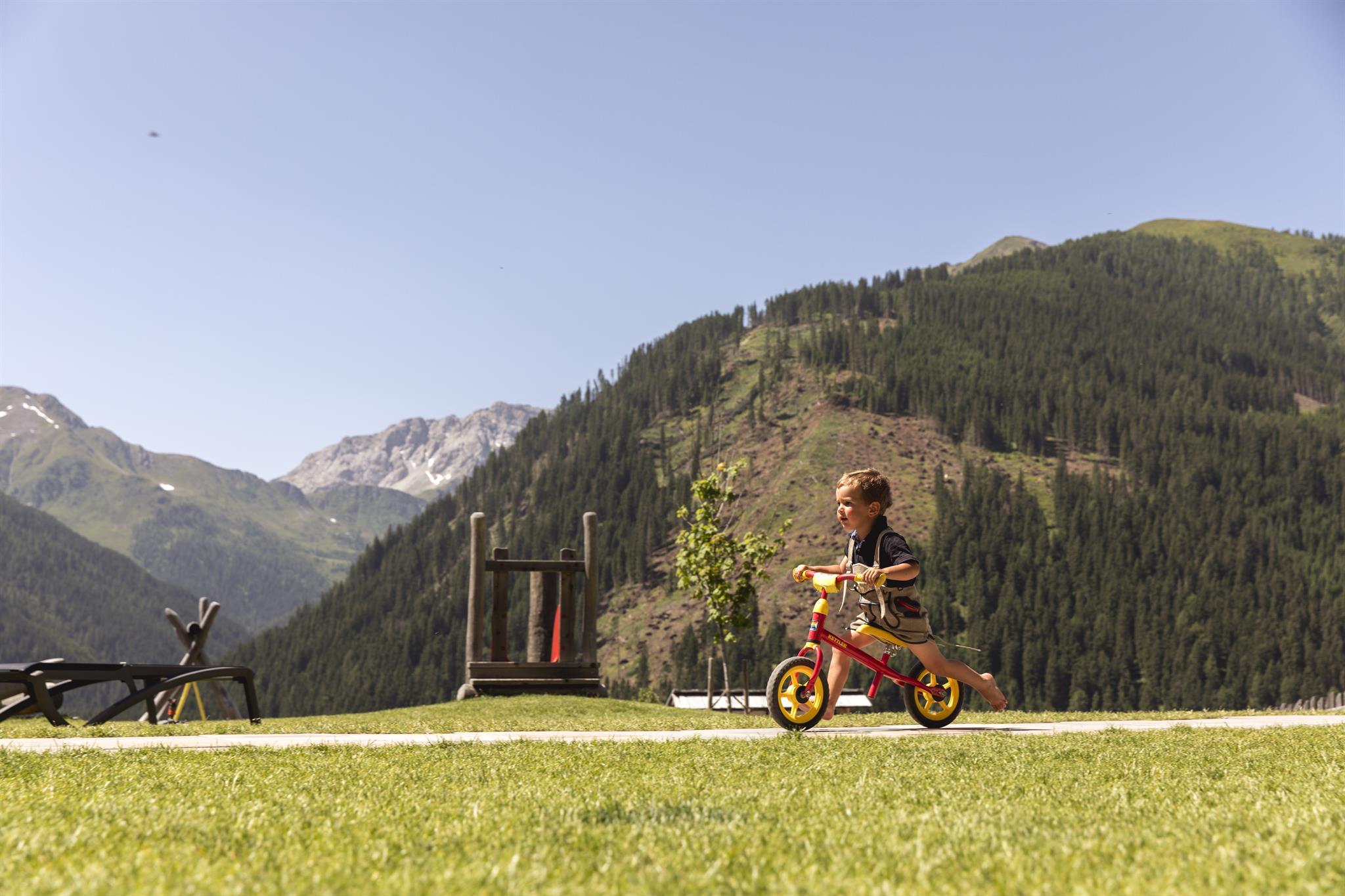 Für Kinder ist der Urlaub im Almfamilyhotel ein waschechtes Abenteuer: großer Außenspielplatz, Streichelzoo, Spielräume, Kinderbetreuung.