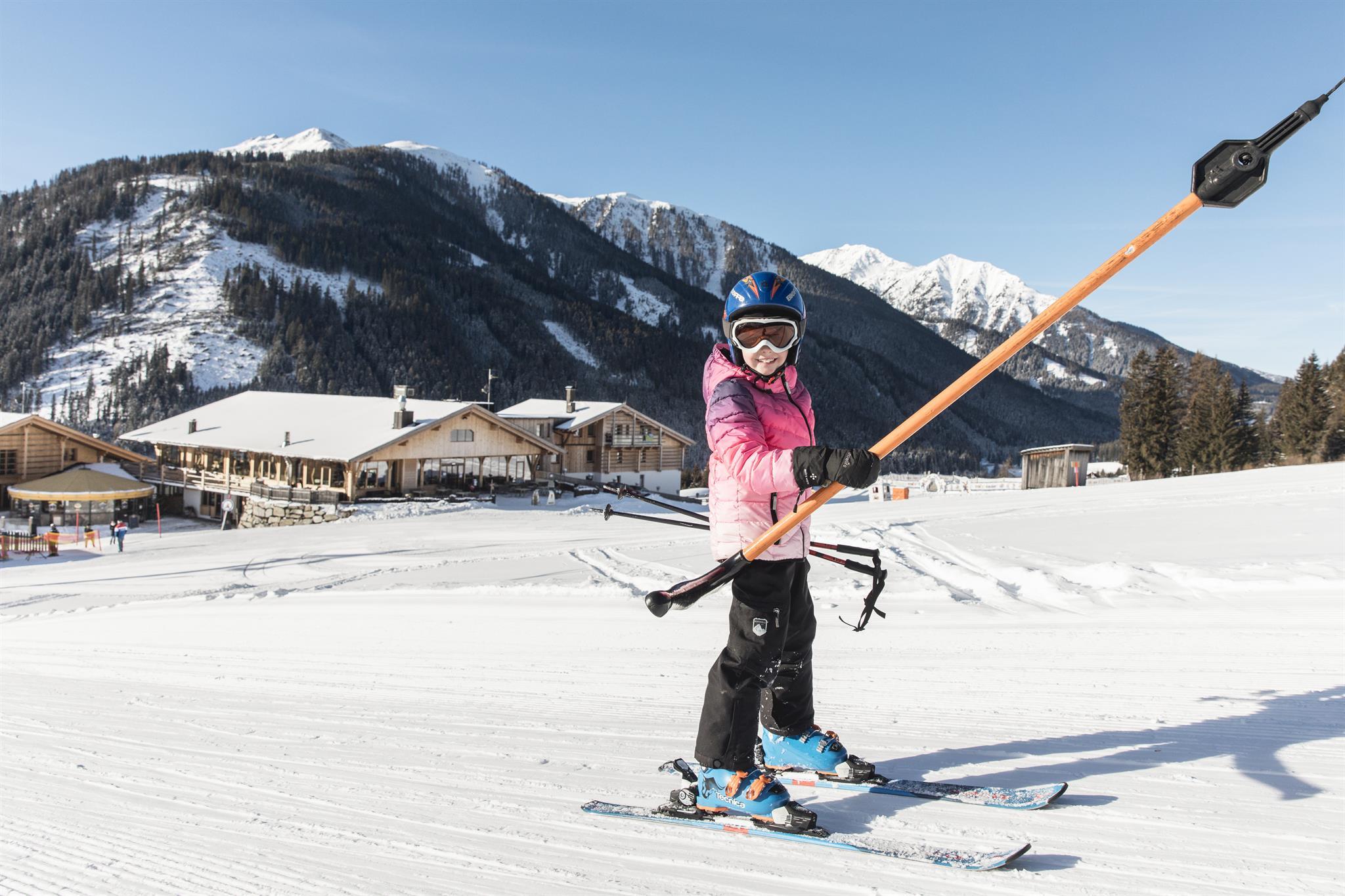 Ski-in & Ski-out: Das Almfamilyhotel liegt direkt am Skilift. Hier befindet sich auch die Schischule mit dem Schischulkindergarten.