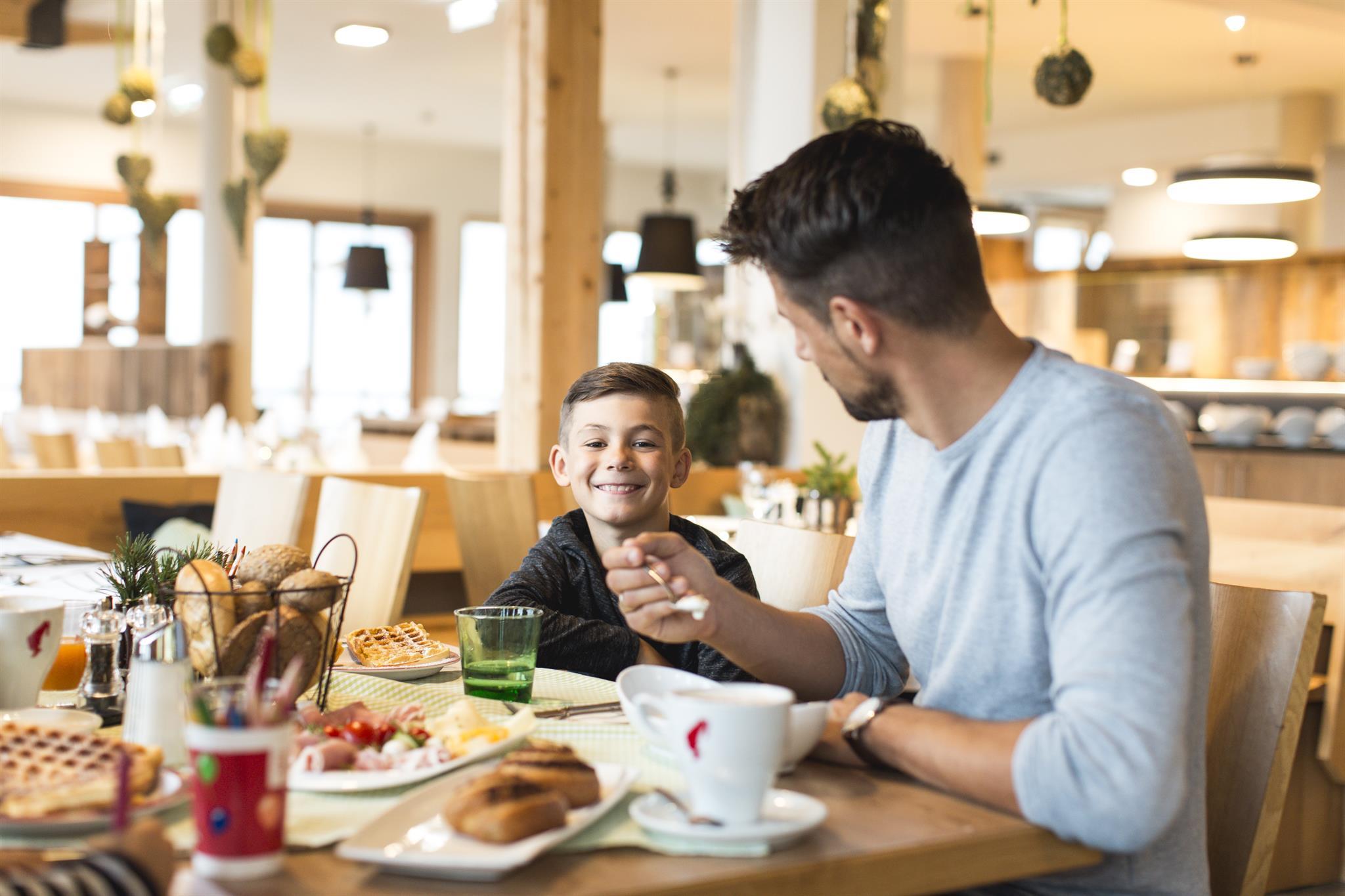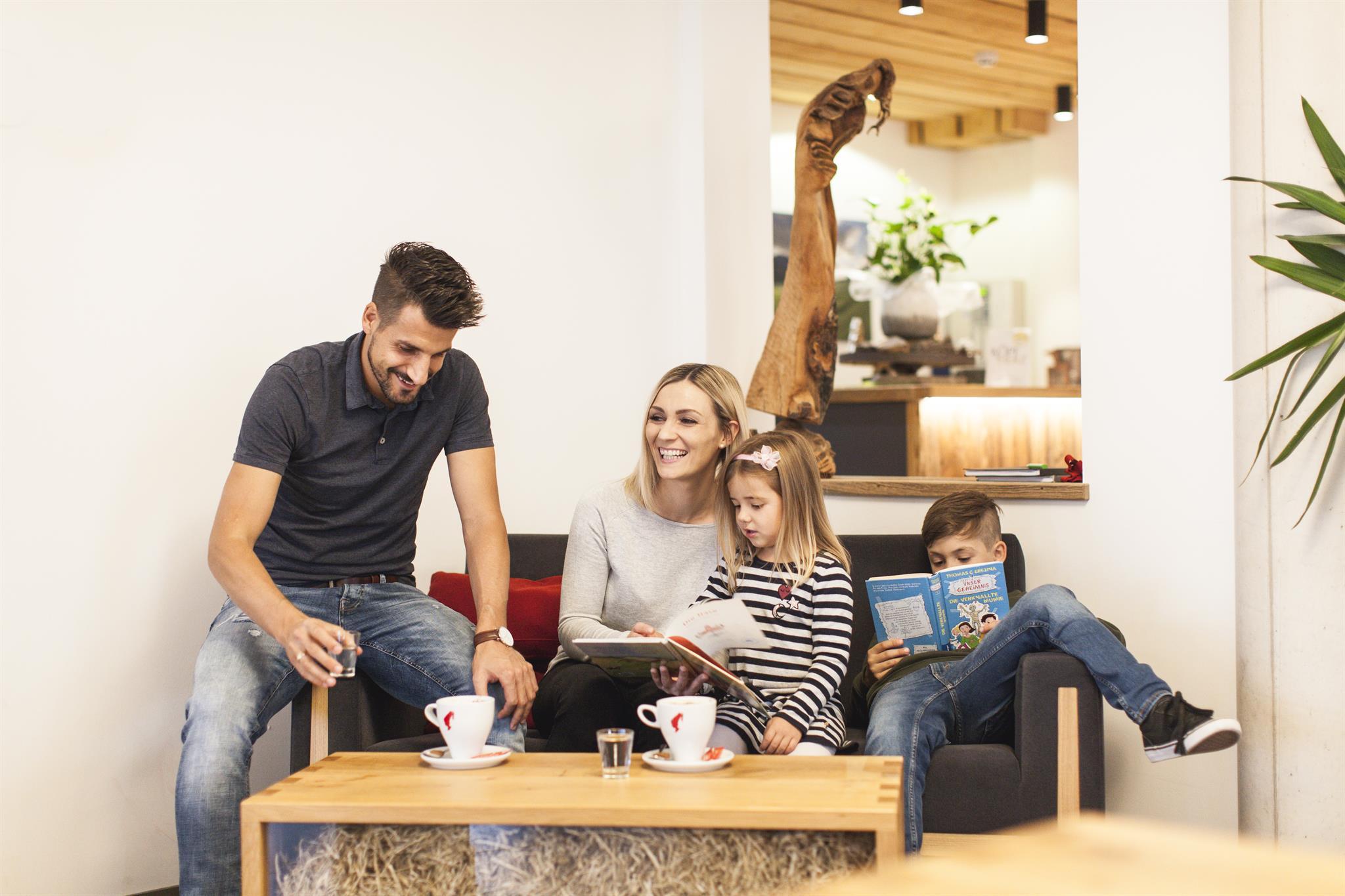 Familiensuiten im typischen Alm-Stil mit getrenntem Kinderschlafzimmer für 4-8 Personen. À-la-carte-Restaurant mit frisch zubereiteten Osttiroler Spezialitäten, hausgemachter Pasta bis hin zu Gourmetmenüs am Abend. Hier kocht exklusiv für Sie Osttirols einziger Küchenchef, der mit einem Michelin Stern ausgezeichnet ist.