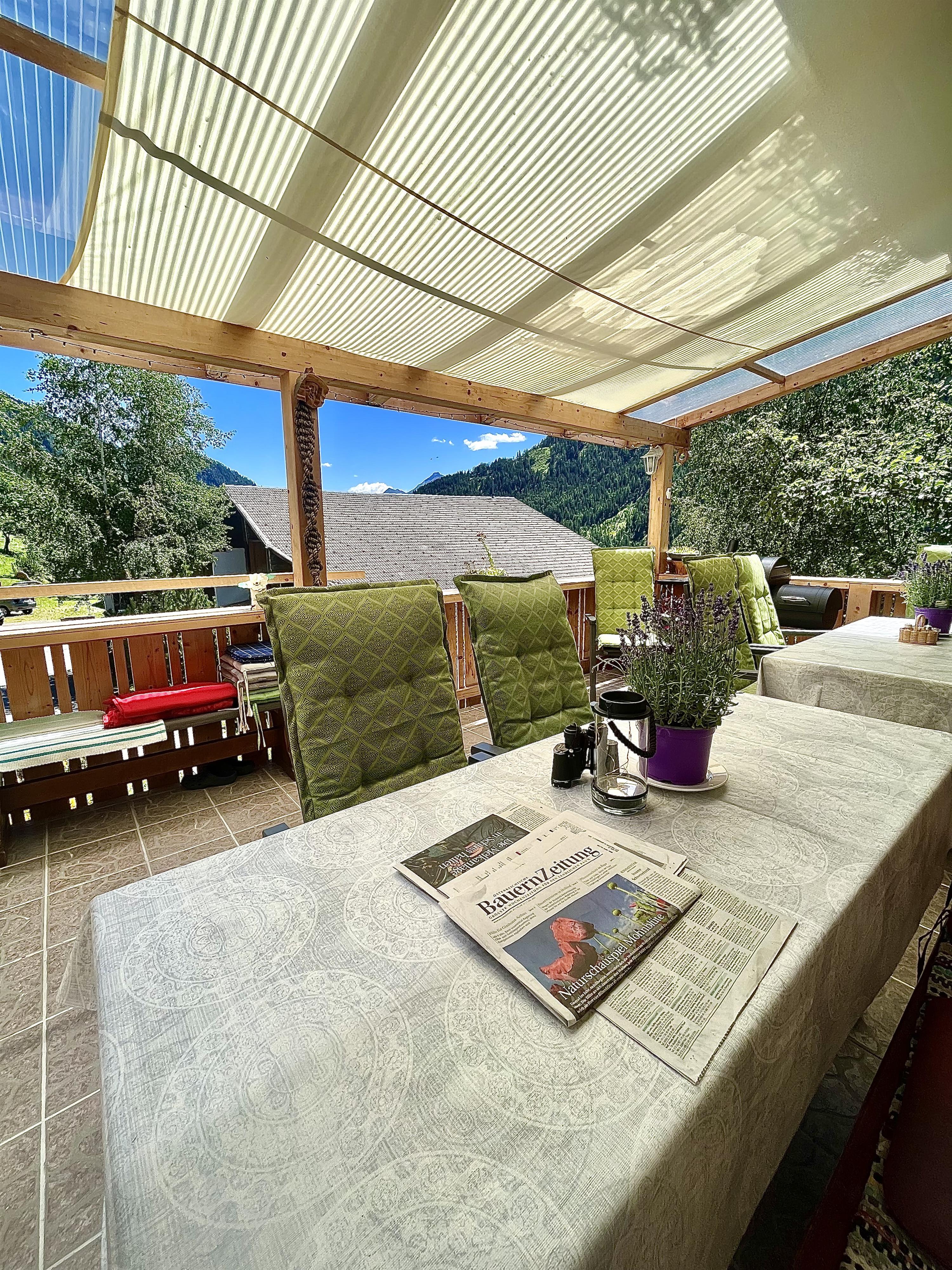 Gemütlicher Bauernhof in ruhiger Lage am sonnigen Nordhang oberhalb Prägratens. Herrliche Aussicht auf die umliegenden Berge und 3000er. In der Nähe unseres Hofes können Sie am privaten Teich samt Grillplatz an lauen Sommerabenden den frischen Heuduft genießen.