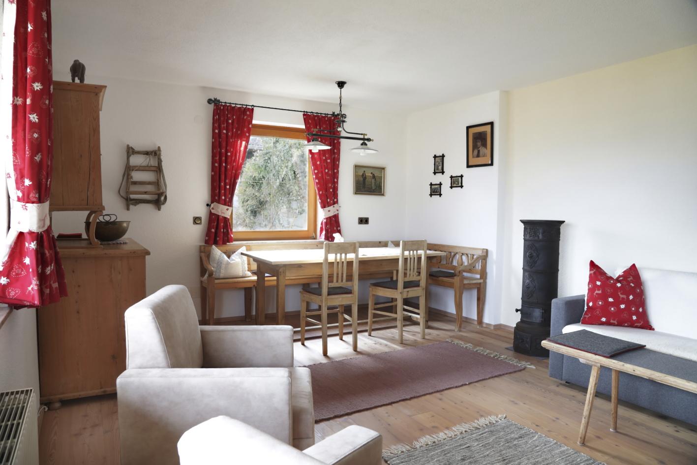 Ruhiges, ca. 80m² großes Komfort-Appartement am Südhang von Lienz. Herrliches Dolomitenpanorama. Eigener Hauseingang, viel Privatsphäre. Appartement mit Küche, großem Wohnzimmer, 1 Schlafzimmer mit Doppelbett und Bad mit Dusche/WC. Hochwertige Ausstattung mit Terrakotta- bzw. Schiffsböden, Holzdecke und Lehmputz im Schlafzimmer. Terrasse und Wiese direkt vor der Wohnung. Nähere Infornationen und Fotos finden Sie auf der Homepage: www.osttirol-ferienhaus.at/ferienwohnung/index.php