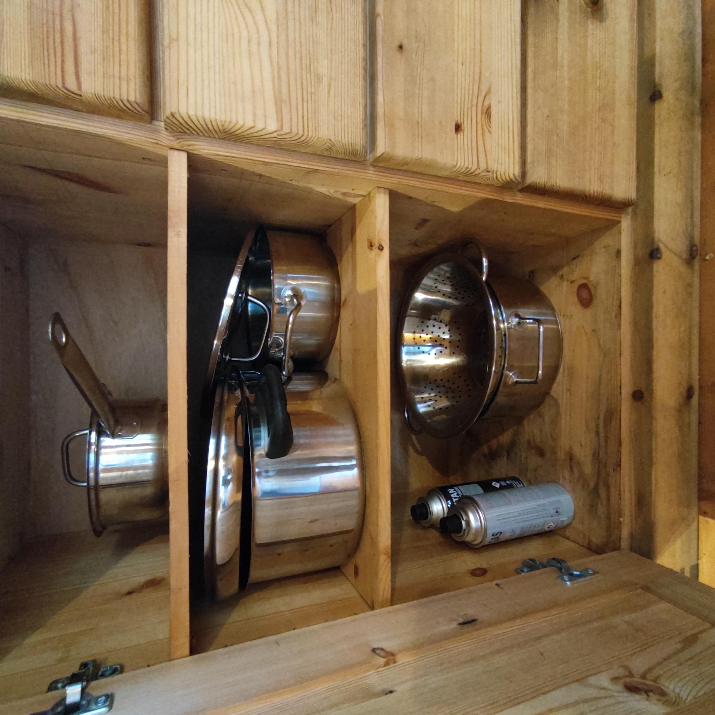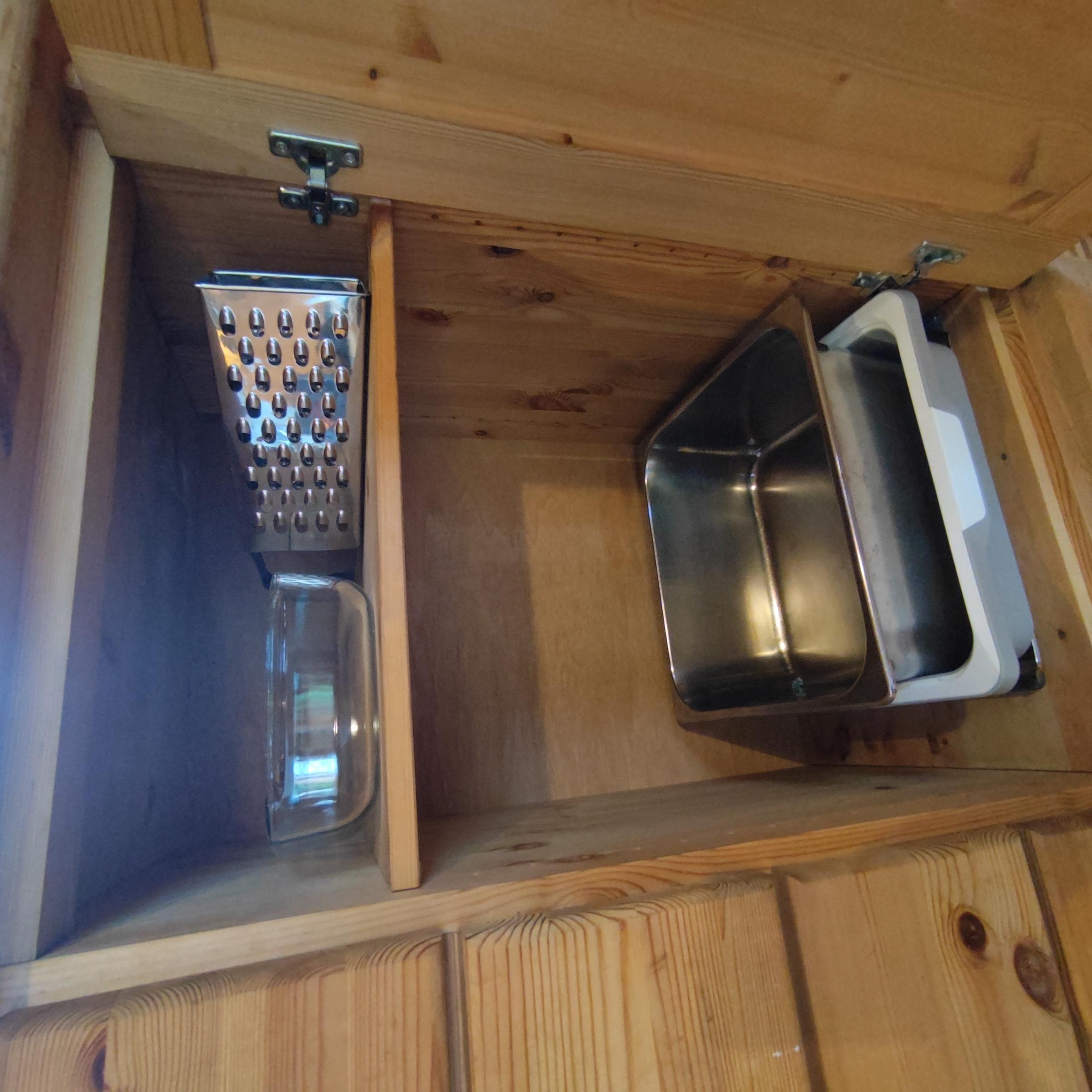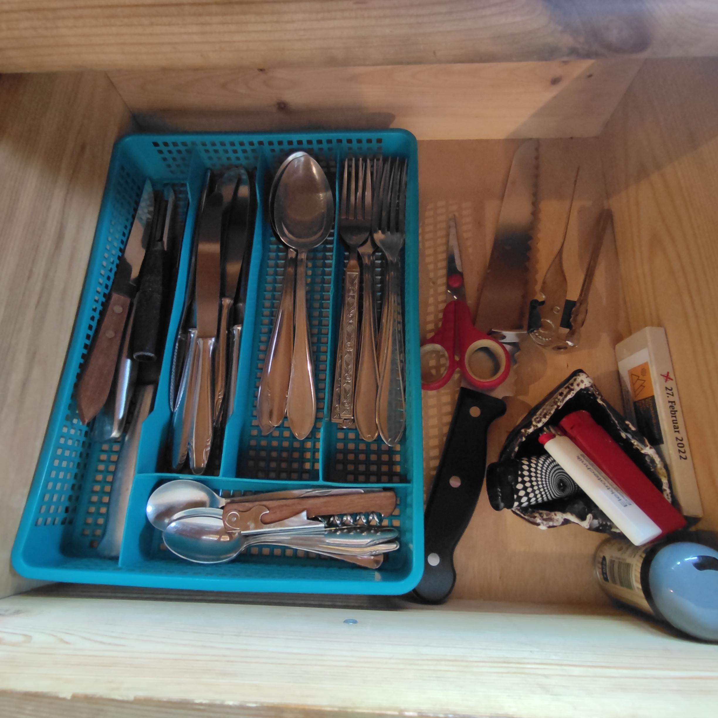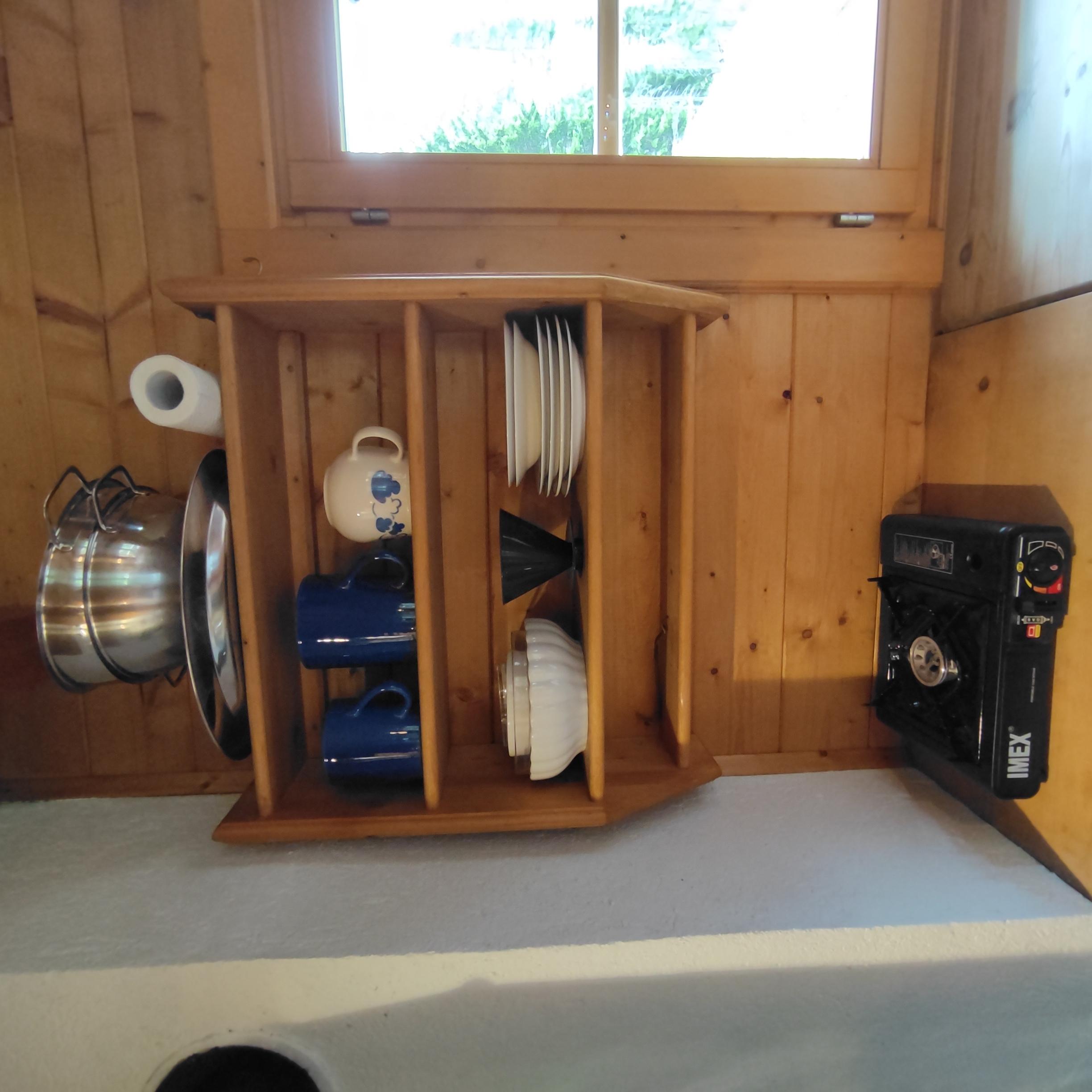 • kleine Küchenzeile samt Grundausstattung (Gaskocher, Geschirr, Mokkakanne, ...)