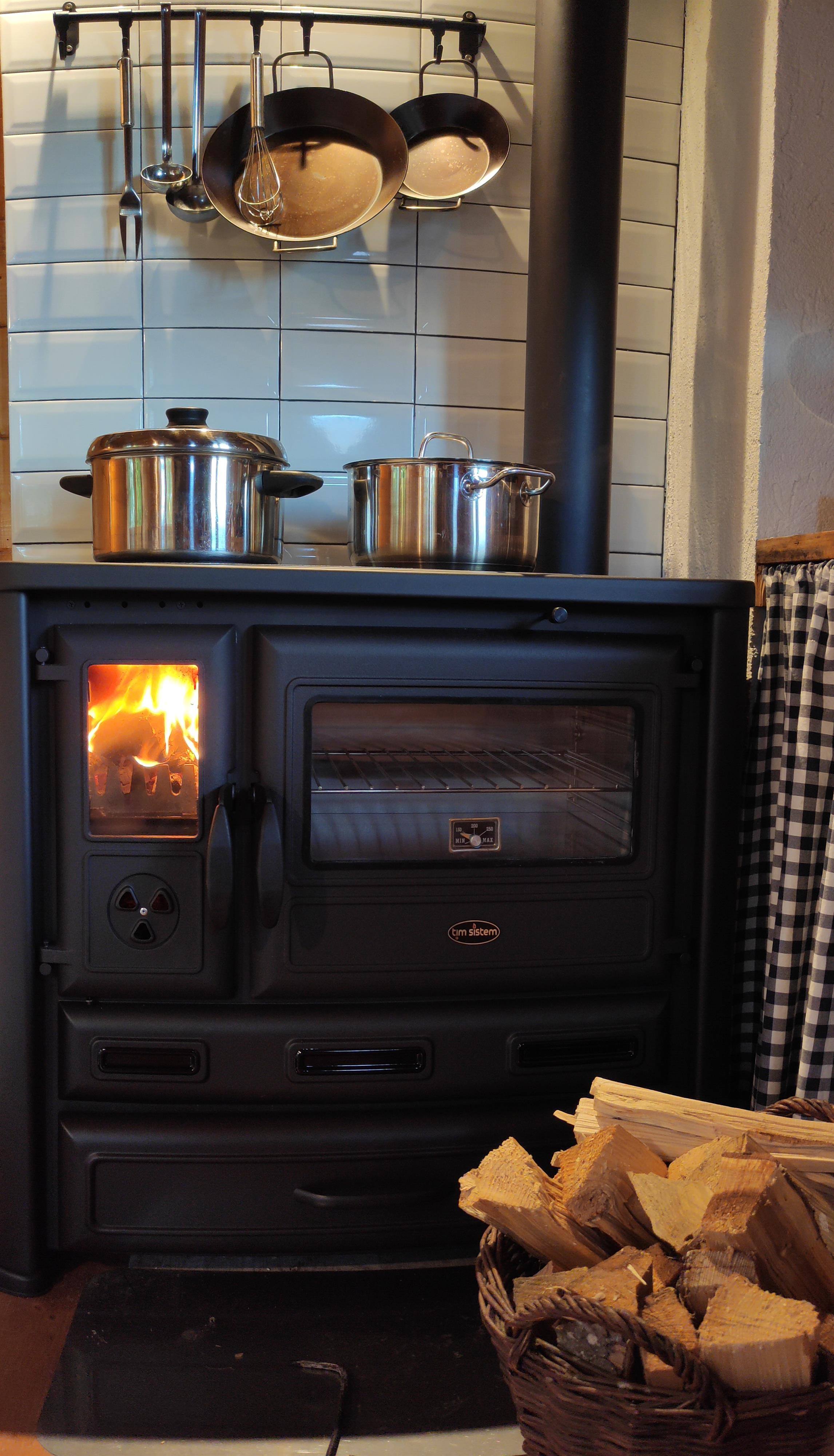 • Holzofen mit Backfunktion für behagliche Abende