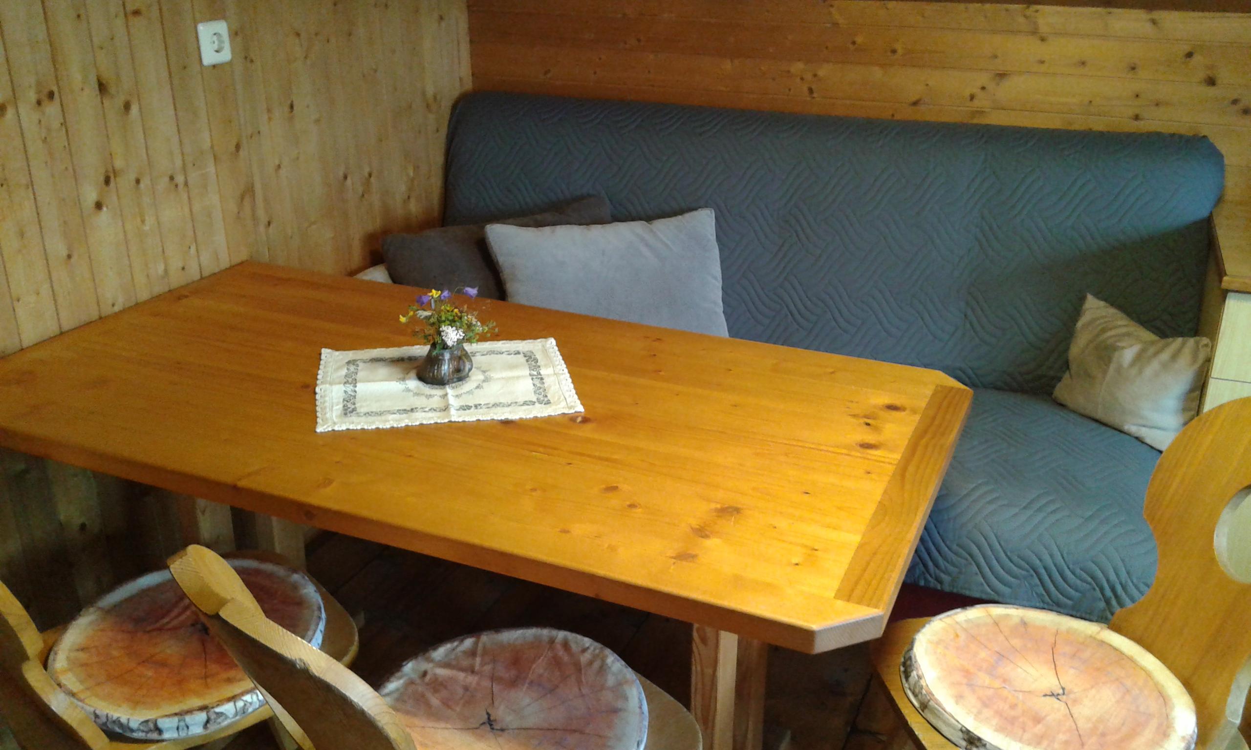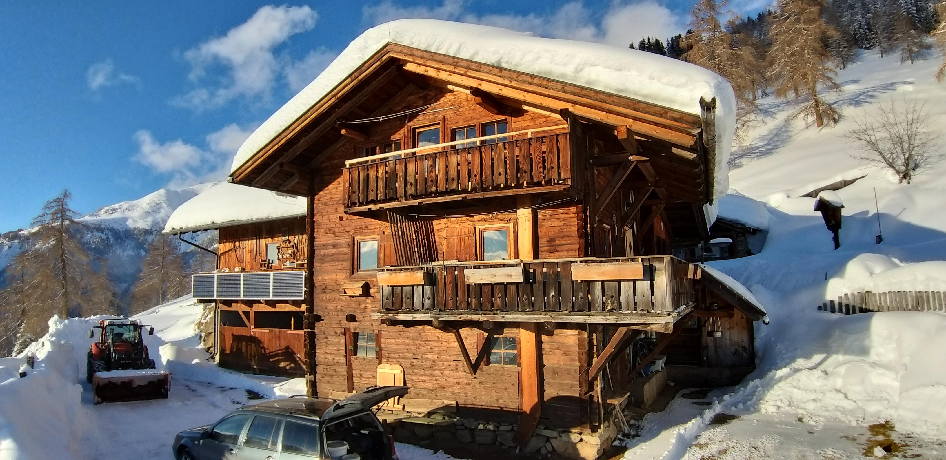 Wohnküche mit Holzherd und Balkon, 1 Zimmer mit 2 Betten, 1 Zimmer mit Doppel- und Stockbett, Dusche und WC im Sommer mit den Bewirtschaftern gemeinsam, im Winter Plumpsklo und Wasser vor der Hütte beim Trog, Strom über Solarbetrieb, Grillmöglichkeit, Mautstraße! Straße ganzjährig befahrbar!